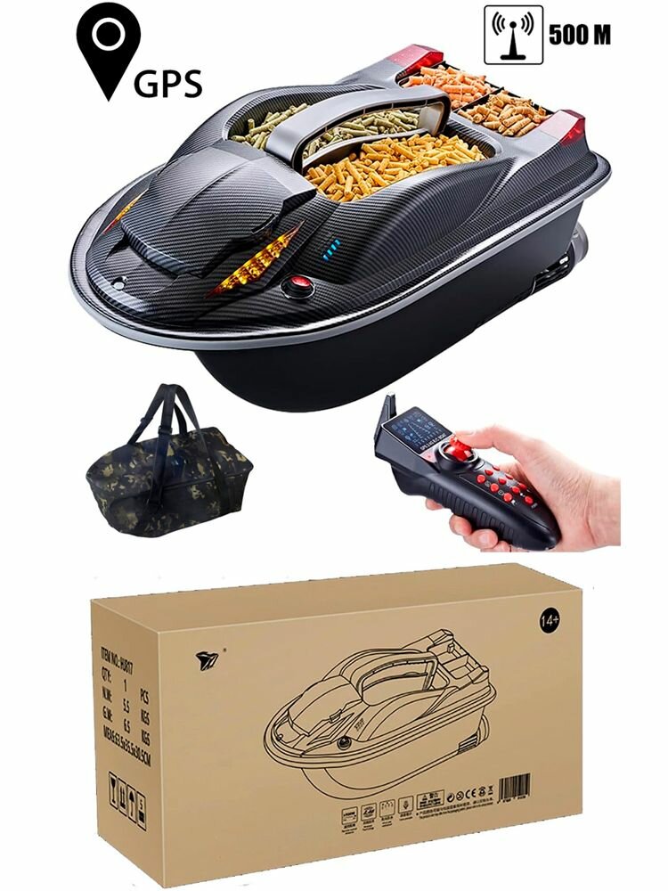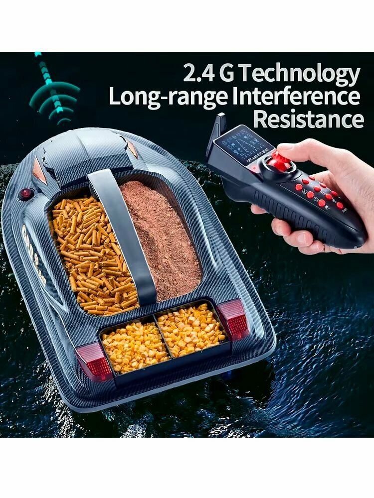 Прикормочный кораблик / катер для рыбалки с GPS - HJ817-BAG - это прикормочный кораблик, который может завозить за один раз сразу до 7 килограмма прикормки, к нему можно закрепить беспроводной эхолот, а также комплектуется мощным аккумуляторам (20000 мА/ч), которого хватит до 4 часов ловли. Кроме того, кораблик оснащен удобным пультом, который позволяет управлять корабликом и всеми функциями одной рукой.