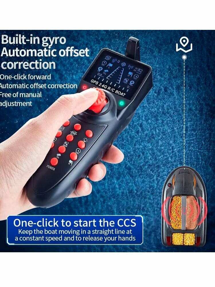 - Кораблик с GPS способен запоминать до 9 точек сброса, а также автоматически доходить до точки сброса и возвращаться обратно.