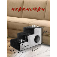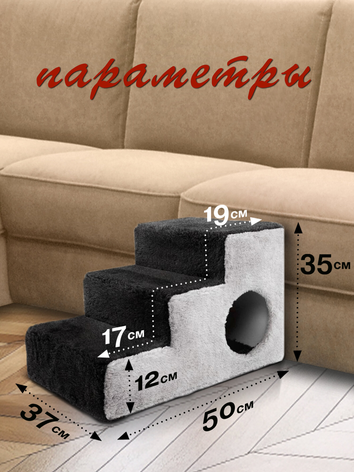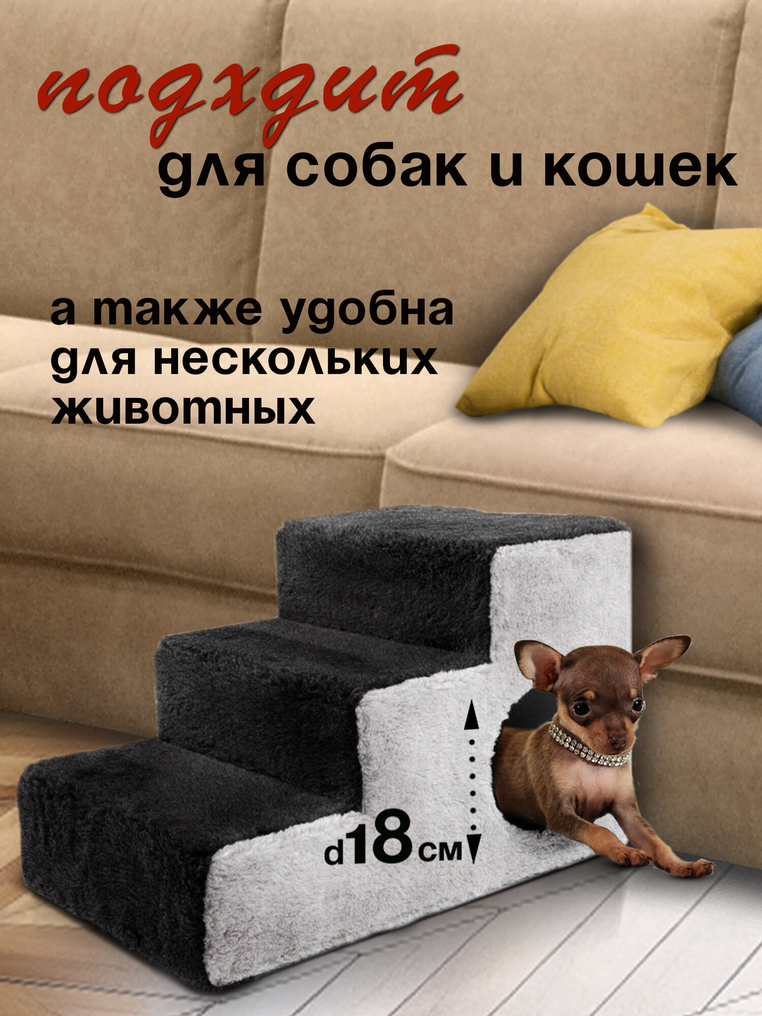 Для кого подходит: - предназначена для собак мелких пород, которые не могут сами забраться и спуститься с кровати; - для пожилых животных; - для кошек. Материал: - основание дсп, двп; - обита искусственным мехом; - чехол не сьемный. Размеры: - длина 50 см, ширина 30 см, высота 35 см. Вес 5.2 кг, может выдержать вес даже взрослого человека. За счет того, что конструкция довольно тяжелая, она плотно прижата к кровати, а также очень удобно для собак, так как лесенки не проваливаются. С такой лесенкой Ваши питомцы всегда будут в безопасности и ближе к Вам!