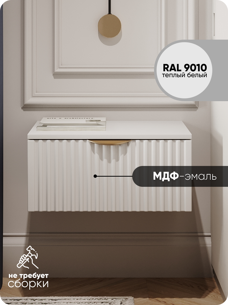 | Дополнительная информация | Доставка мебели в собранном виде, не требует сборки. Материал фасада и корпуса МДФ. Собственное фабричное производство «LiteForm». Выдвижной ящик. Доводчик при закрытии ящика. Бесшумные направляющие скрытого монтажа. Компактная и удобная тумба прикроватная. Надёжная упаковка. Стильные ручки на выбор по цвету: золотой, хром или чёрный. Уют в вашем доме. Гарантия замены, гарантийный срок 6 месяцев на все изделия. |