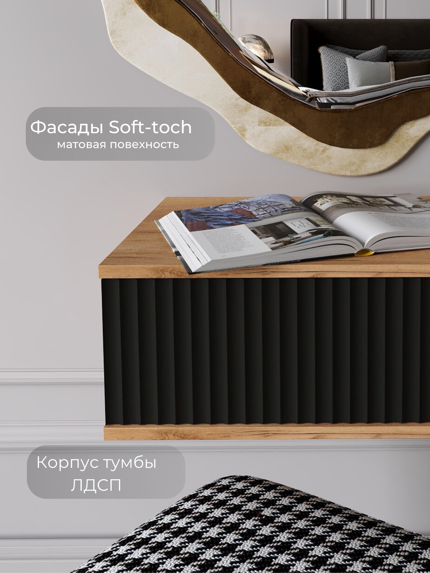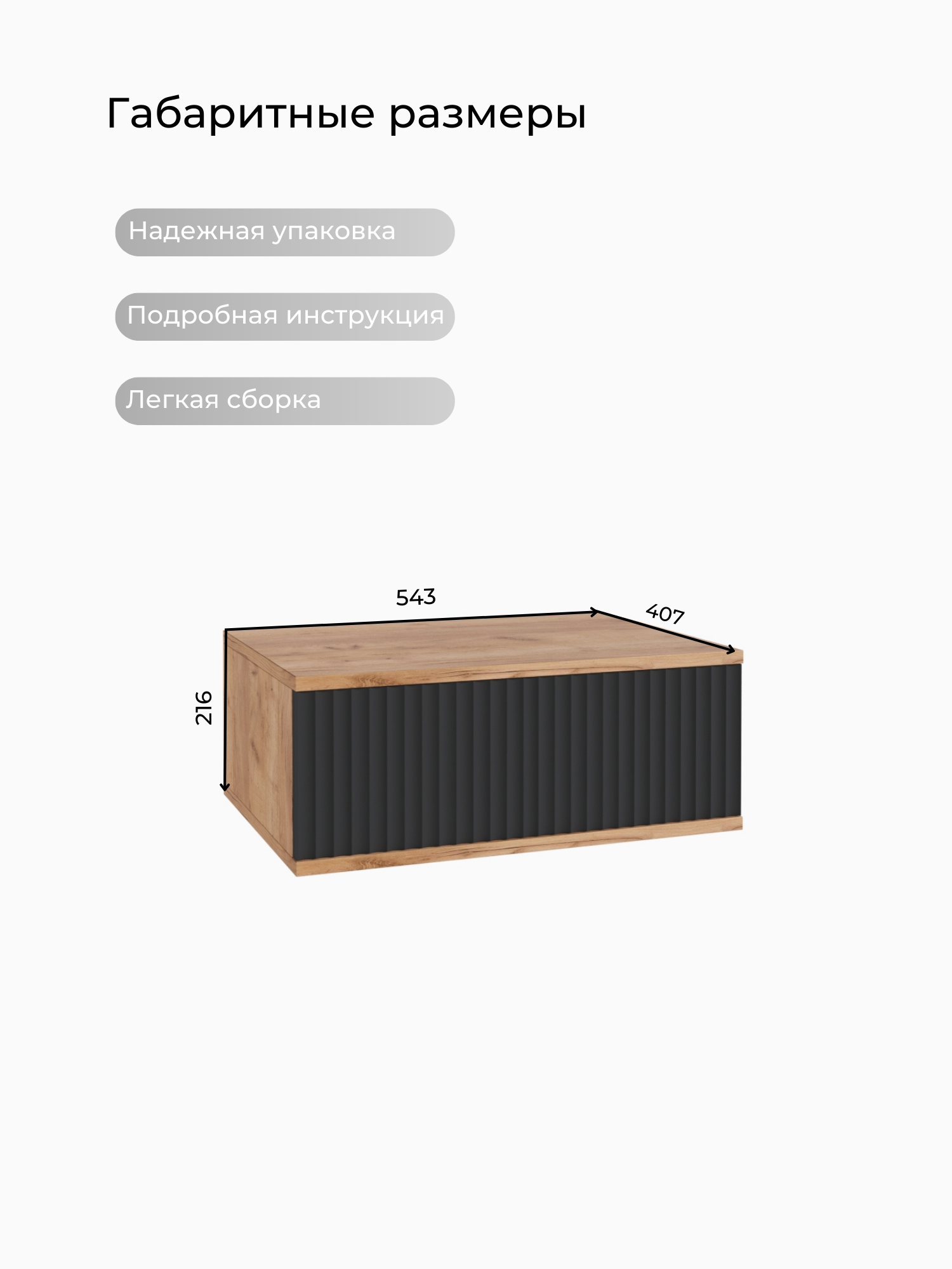 Подвесная тумба в прихожую «Лестер» — это функциональность и стиль. Тумба подвесная в прихожую станет отличным дополнением к вашему интерьеру в классическом стиле, минимализм или лофт. Она сочетает в себе функциональность и стильный дизайн, который подойдет для различных помещений, таких как прихожая, коридор, гостиная, кабинет или прикроватная тумба в спальню и может служить как туалетный столик, шкаф для хранения, стеллаж для книг. Тумба с креплением к стене оснащена ящиком для хранения ключей и мелочей, что делает ее удобной и практичной в использовании. Фасад тумбы выполнен из МДФ с тактильной поверхностью Soft touch, что придает ей элегантный и современный вид. Корпус изготовлен из ЛДСП в цвете Дуб крафт золотой, что добавляет изделию теплоту и уют. Система открытия от нажатия Push to open обеспечивает удобство использования тумбы, так как вам не придется тратить время на поиск ручки или замка. Навесная тумбочка поставляется в разобранном виде, что облегчает ее транспортировку и установку. Подробная инструкция по сборке позволяет собрать тумбу самостоятельно без особых усилий. Подвесные тумбы в прихожую имеют размеры 21.6х54.3х40.7 см, что делает ее компактной и вместительной одновременно. В комплекте идет одна тумба и инструкция по сборке. Выбирая подвесную тумбу в прихожую, вы получаете стильное и функциональное решение для вашего дома, которое будет радовать вас своей практичностью и удобством использования.