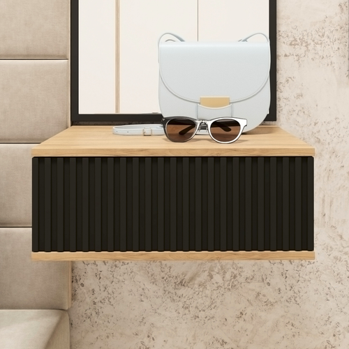 Подвесная тумба в прихожую «Лестер» — это функциональность и стиль. Тумба подвесная в прихожую станет отличным дополнением к вашему интерьеру в классическом стиле, минимализм или лофт. Она сочетает в себе функциональность и стильный дизайн, который подойдет для различных помещений, таких как прихожая, коридор, гостиная, кабинет или прикроватная тумба в спальню и может служить как туалетный столик, шкаф для хранения, стеллаж для книг. Тумба с креплением к стене оснащена ящиком для хранения ключей и мелочей, что делает ее удобной и практичной в использовании. Фасад тумбы выполнен из МДФ с тактильной поверхностью Soft touch, что придает ей элегантный и современный вид. Корпус изготовлен из ЛДСП цвета дуб, что добавляет изделию теплоту и уют. Система открытия от нажатия Push to open обеспечивает удобство использования тумбы, так как вам не придется тратить время на поиск ручки или замка. Навесная тумбочка поставляется в разобранном виде, что облегчает ее транспортировку и установку. Подробная инструкция по сборке позволяет собрать тумбу самостоятельно без особых усилий. Подвесные тумбы в прихожую имеют размеры 21.6х54.3х40.7 см, что делает ее компактной и вместительной одновременно. В комплекте идет одна тумба и инструкция по сборке. Выбирая подвесную тумбу в прихожую, вы получаете стильное и функциональное решение для вашего дома, которое будет радовать вас своей практичностью и удобством использования.