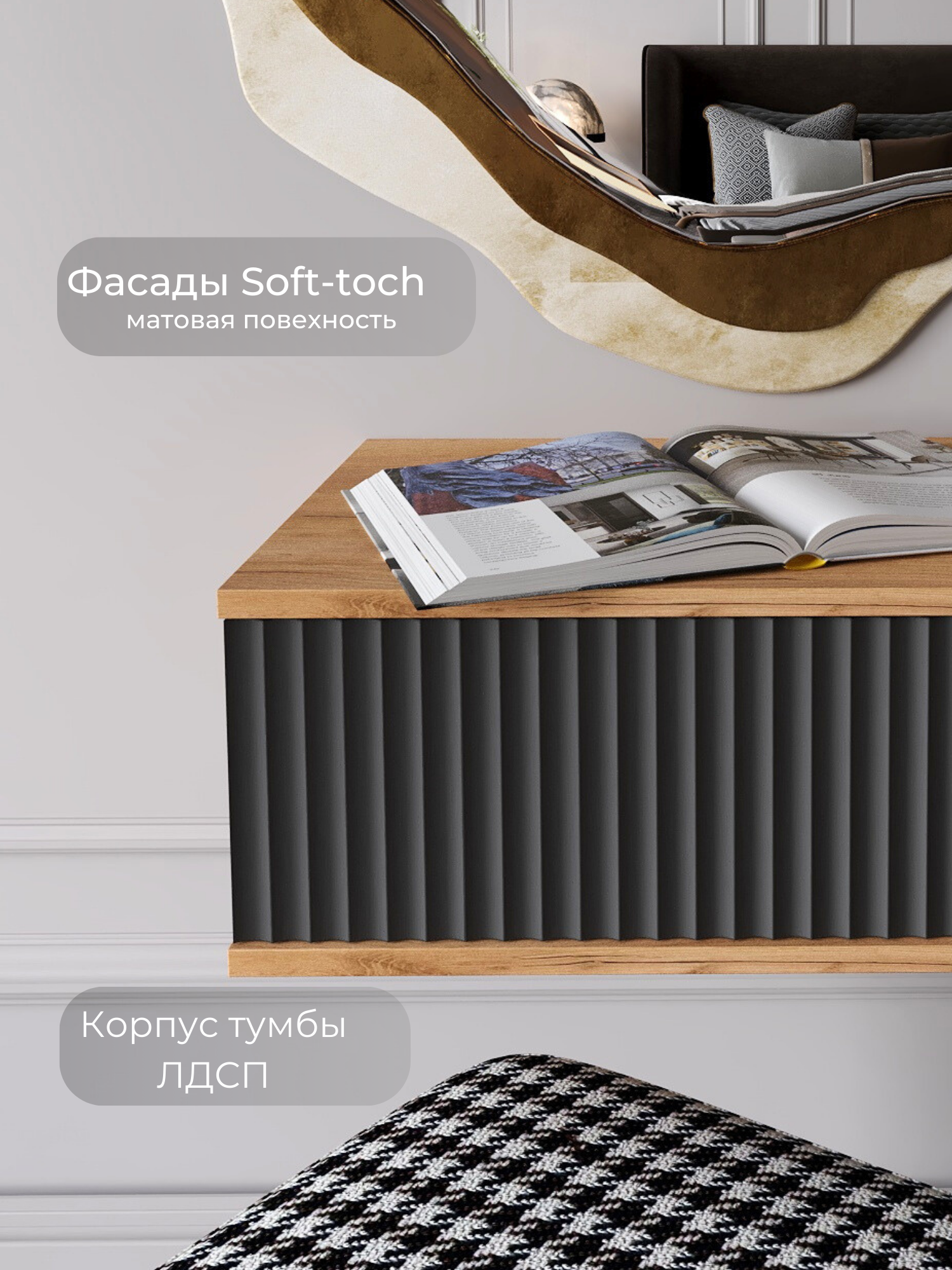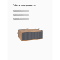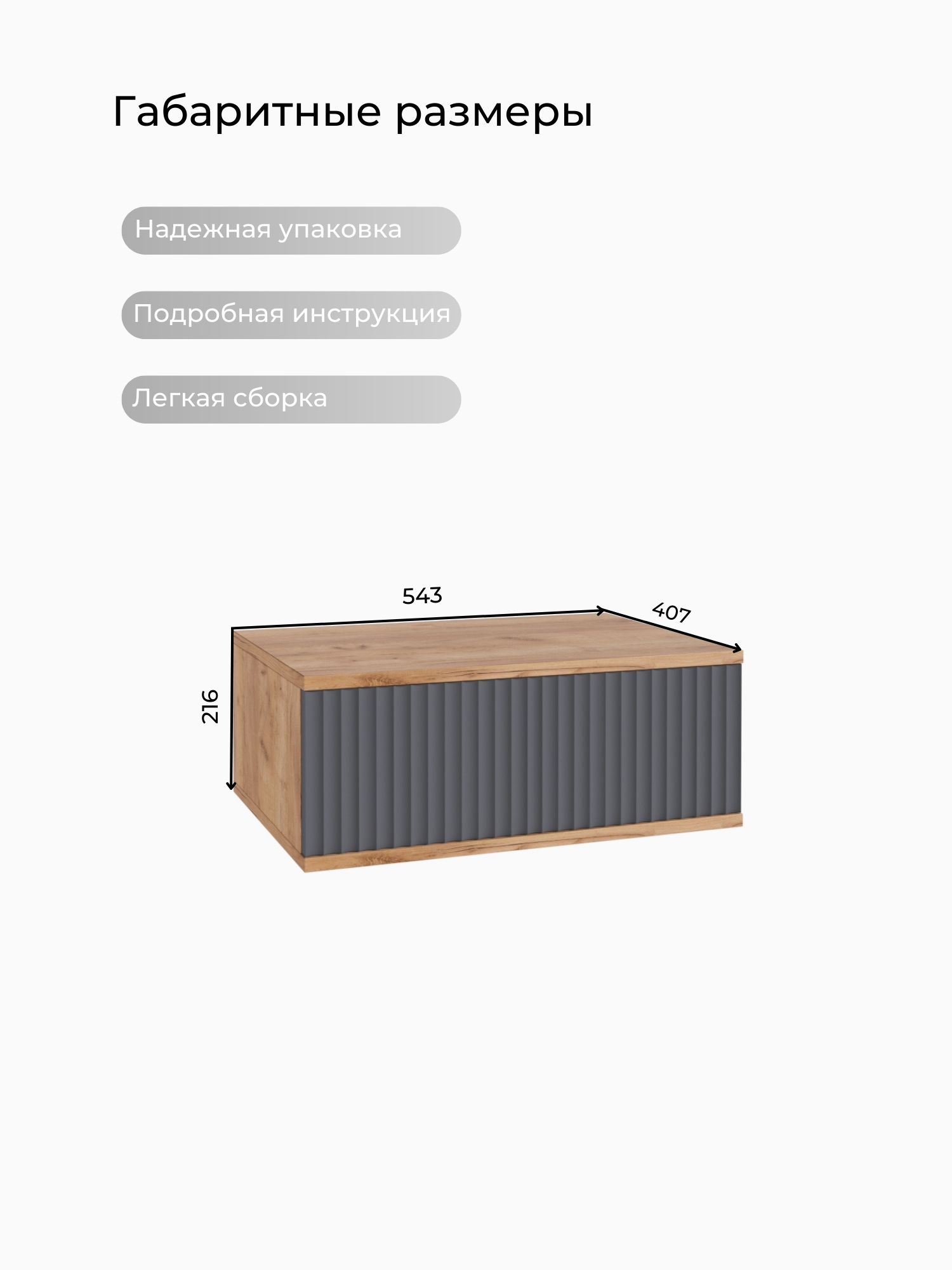 Подвесная тумба в прихожую «Лестер» — это функциональность и стиль. Тумба подвесная в прихожую станет отличным дополнением к вашему интерьеру в классическом стиле, минимализм или лофт. Она сочетает в себе функциональность и стильный дизайн, который подойдет для различных помещений, таких как прихожая, коридор, гостиная, кабинет или прикроватная тумба в спальню и может служить как туалетный столик, шкаф для хранения, стеллаж для книг. Тумба с креплением к стене оснащена ящиком для хранения ключей и мелочей, что делает ее удобной и практичной в использовании. Фасад тумбы выполнен из МДФ с тактильной поверхностью Soft touch, что придает ей элегантный и современный вид. Корпус изготовлен из ЛДСП в цвете Дуб крафт золотой, что добавляет изделию теплоту и уют. Система открытия от нажатия Push to open обеспечивает удобство использования тумбы, так как вам не придется тратить время на поиск ручки или замка. Навесная тумбочка поставляется в разобранном виде, что облегчает ее транспортировку и установку. Подробная инструкция по сборке позволяет собрать тумбу самостоятельно без особых усилий. Подвесные тумбы в прихожую имеют размеры 21.6х54.3х40.7 см, что делает ее компактной и вместительной одновременно. В комплекте идет одна тумба и инструкция по сборке. Выбирая подвесную тумбу в прихожую, вы получаете стильное и функциональное решение для вашего дома, которое будет радовать вас своей практичностью и удобством использования.