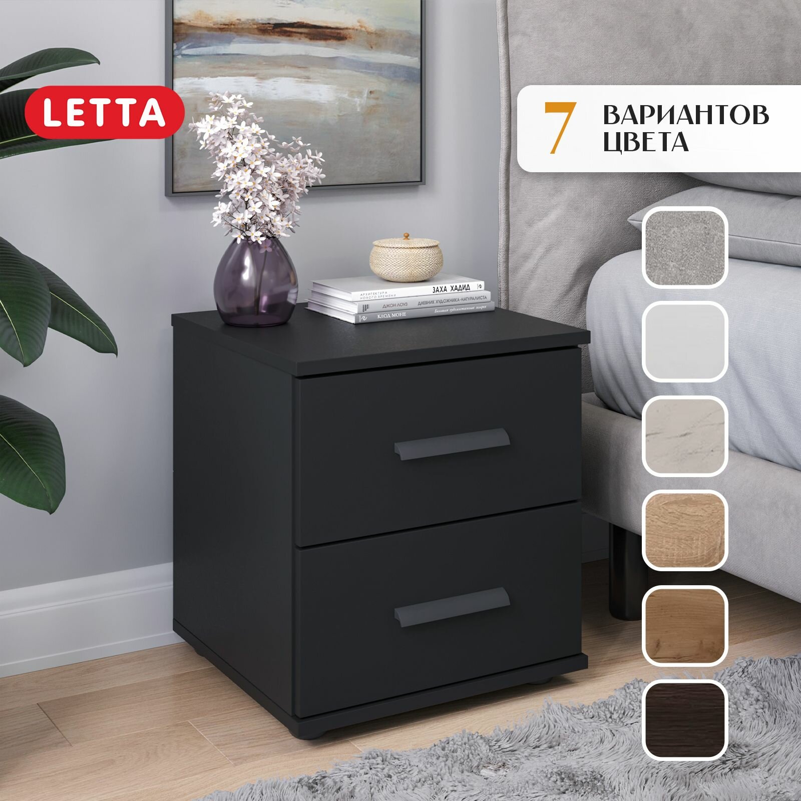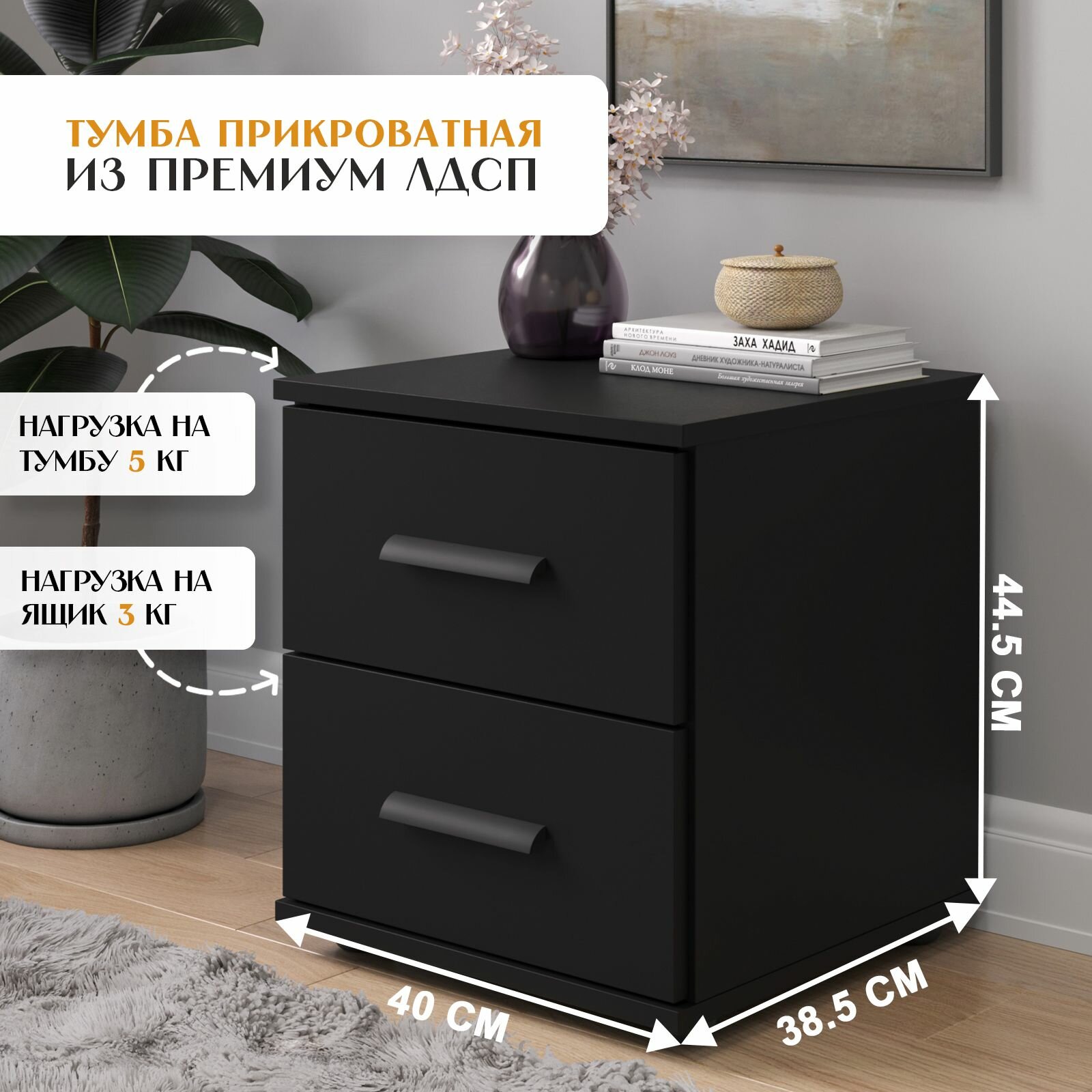 Прикроватная тумба Letta «Ультра», с ножками, ЛДСП, чёрная, 40 см x 44,5 см x 38,5 см: сравнение цен, характеристики, фото, актуальное наличие и цены.