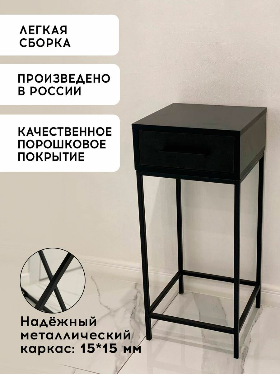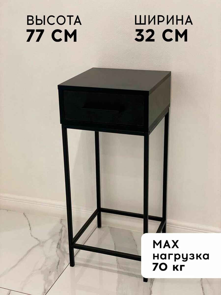Тумба прикроватная в стиле лофт - идеальное решение для вашего дома. Высота 77 см, ширина 32 см. Размер ящика 32*32*17 см. Изготовлена из прочного материала: лдсп толщиной 16 мм и металла 15 на 15 мм, что гарантирует долговечность и надежность изделия. Эта тумба идеально сочетается с любым интерьером - будь то спальня или гостиная. Она обладает открытой полкой, выполненной из лдсп на металлическом основании, что создает ощущение легкости и простора. Вся фурнитура, необходимая для сборки, входит в комплект, а торцевые поверхности обработаны кромкой, что придает изделию завершенный и эстетичный вид. Эта тумба прикроватная в стиле лофт - практичная и стильная мебель, которая поможет создать уютную атмосферу в вашем доме.