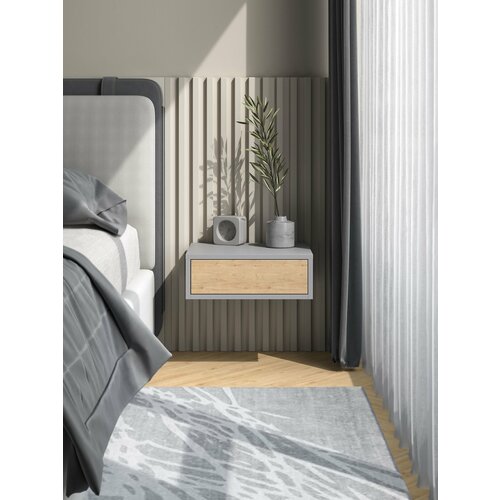 Прикроватная тумбочка подвесная цвет тёмно-серый и дуб, открывание push-to-open, 42х34х15 см: сравнение цен, характеристики, фото, актуальное наличие и цены.