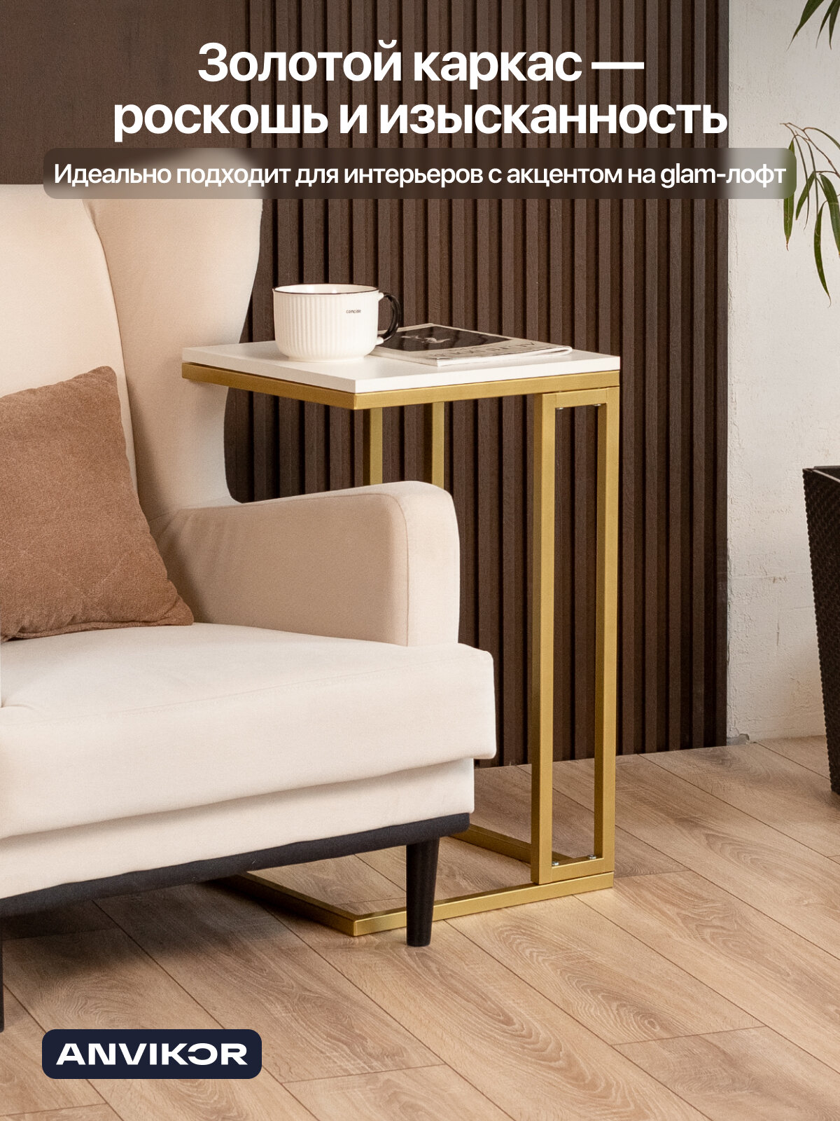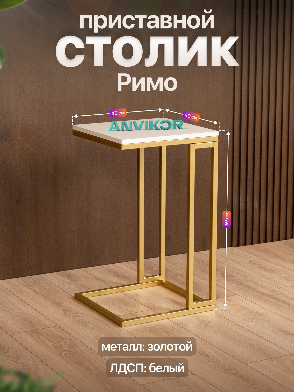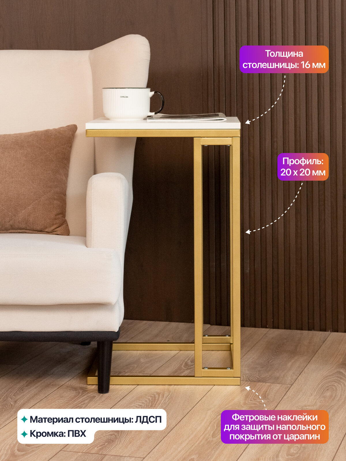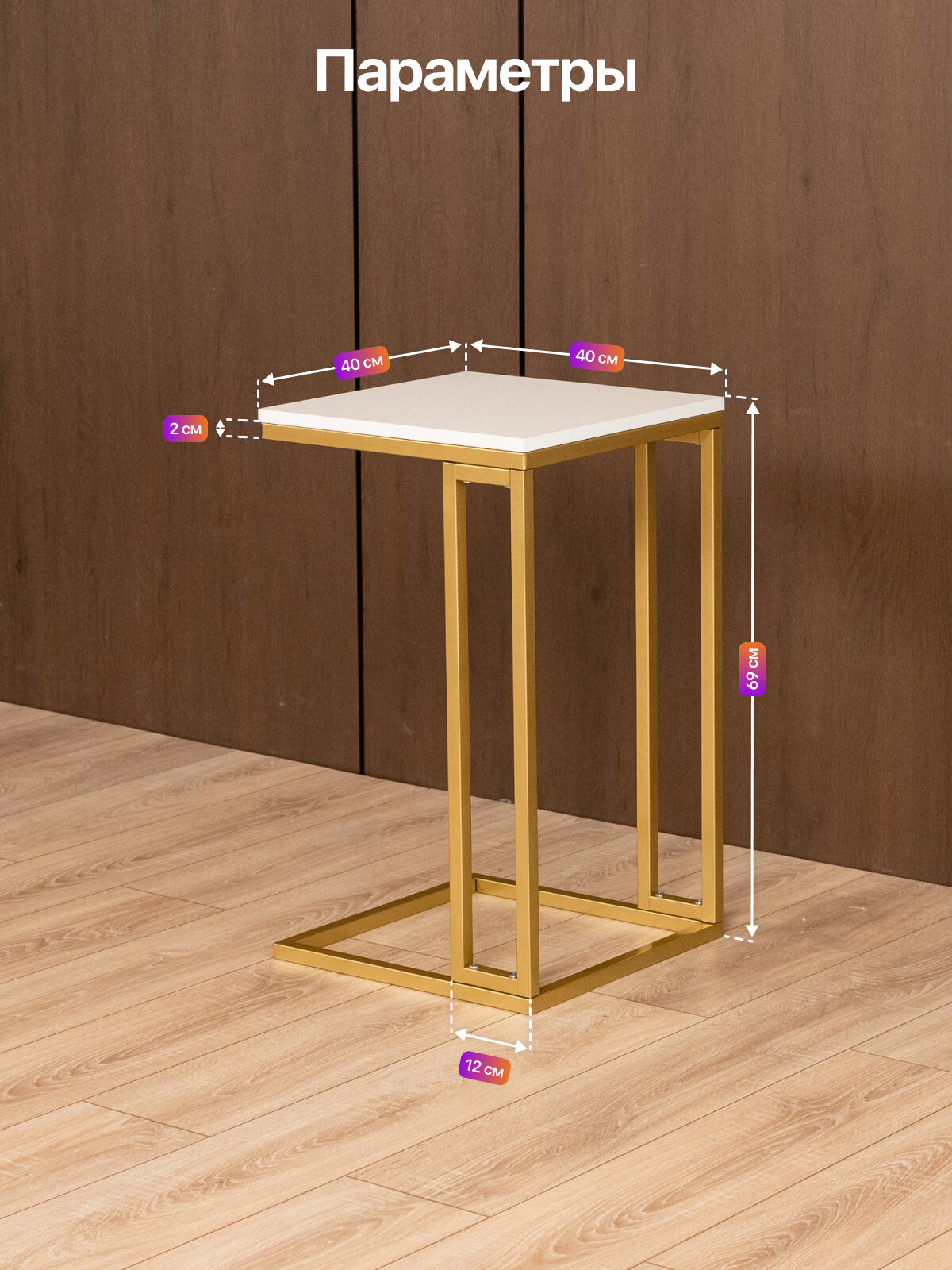 Прикроватный приставной журнальный столик в стиле лофт Римо золотой/белый: сравнение цен, характеристики, фото, актуальное наличие и цены.