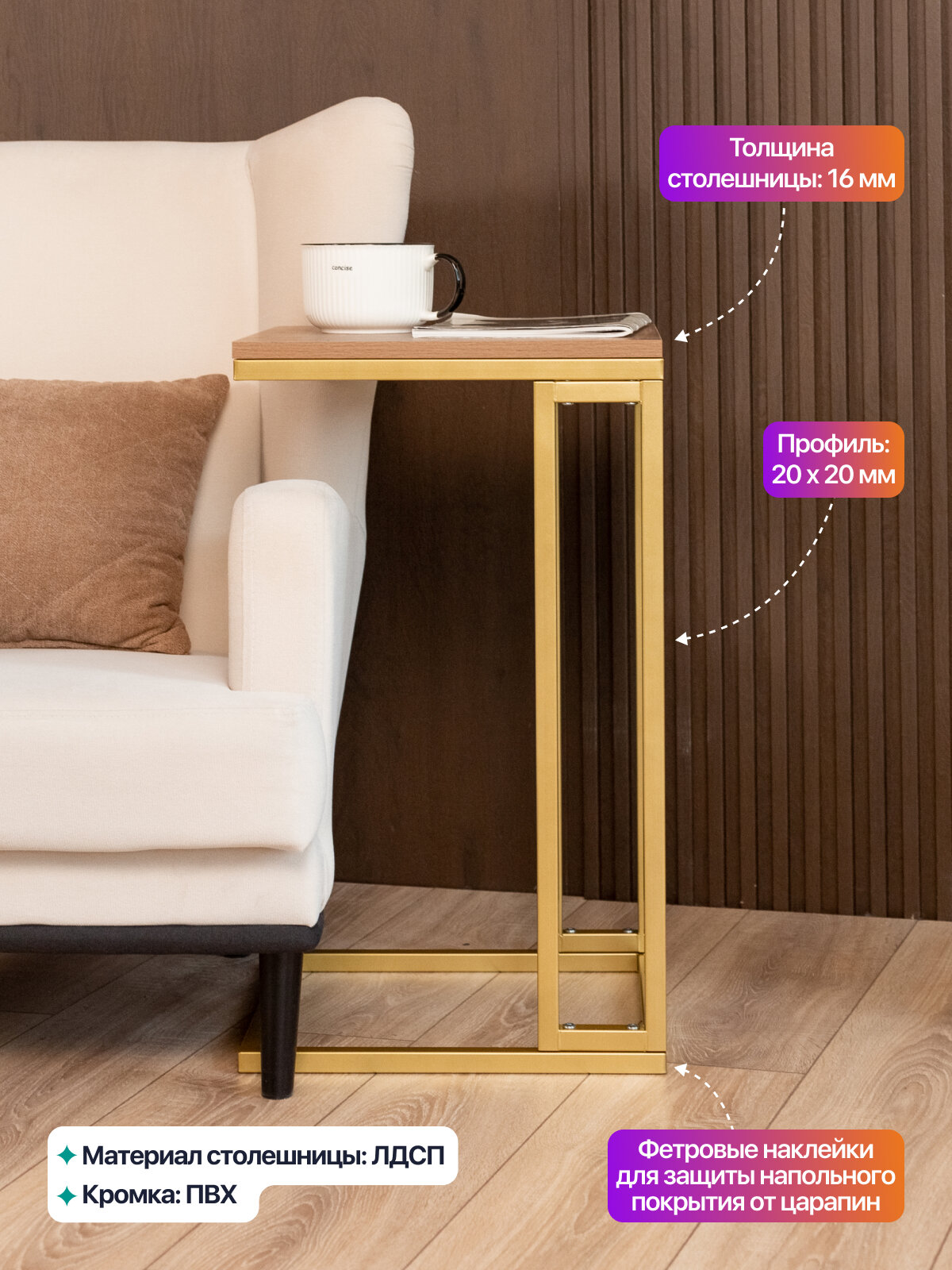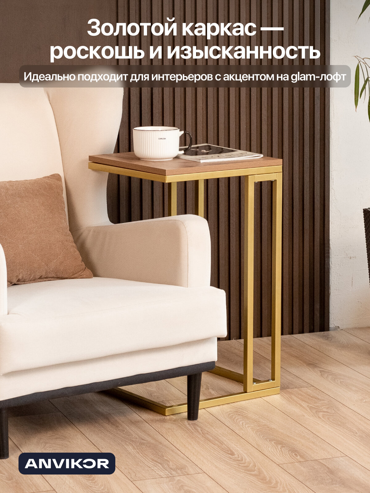 Прикроватный приставной журнальный столик в стиле лофт Римо золотой/коричневый: сравнение цен, характеристики, фото, актуальное наличие и цены.