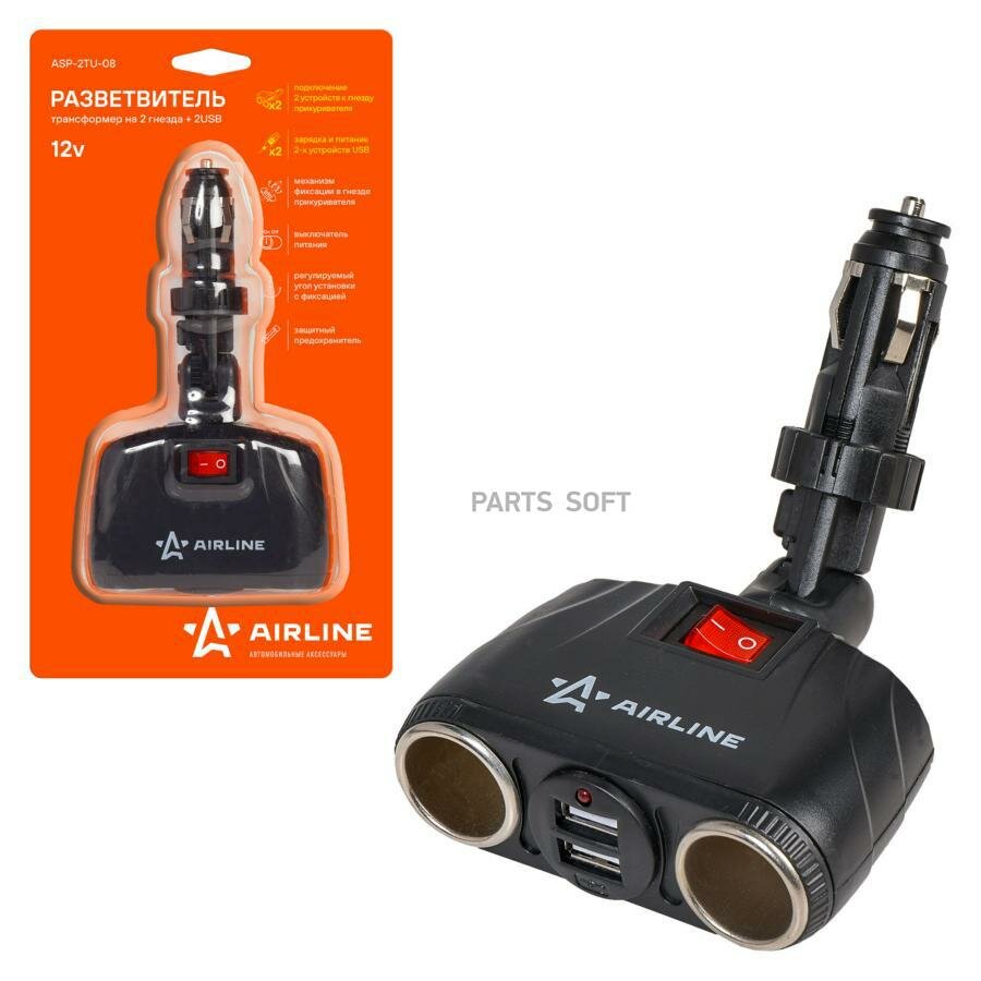 Прикуриватель-разветвитель трансформер 2 гнезда + 2USB, екер-фиксатор (ASP-2TU-08) от официального дистрибьютора, производитель — AIRLINE, артикул ASP2TU08: сравнение цен, характеристики, фото, актуальное наличие и цены.