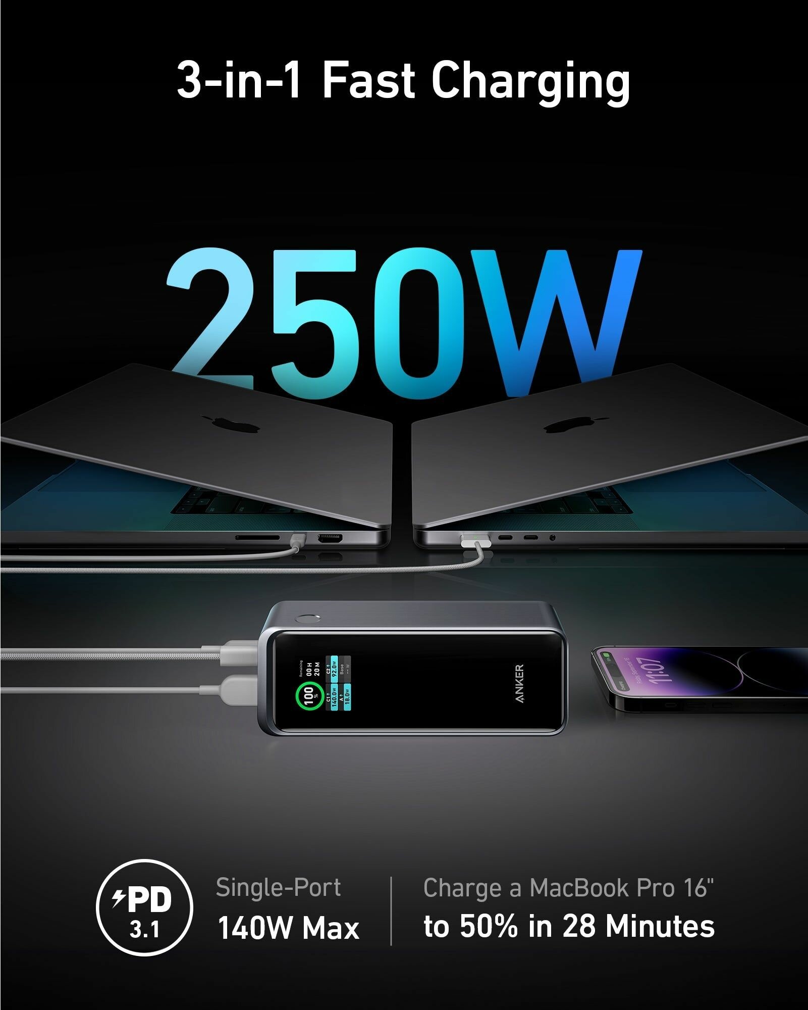 Приложение Anker Prime, портативное зарядное устройство мощностью 250Вт (99,54Вт) с портом 27650mAh 3: сравнение цен, характеристики, фото, актуальное наличие и цены.