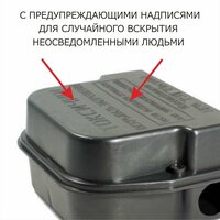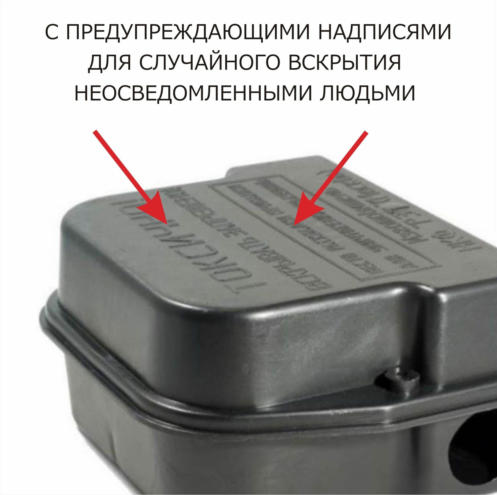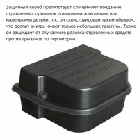 Защитный короб препятствует случайному поеданию отравленных приманок домашними животными или маленькими детьми, т. к. он сконструирован таким образом, что доступ внутрь имеют только небольшие грызуны. Также он защищает от случайного разноса отравленных средств против грызунов по территории.