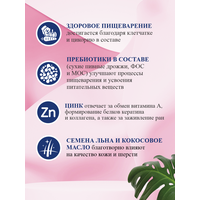 • Семена льна и кокосовое масло – являются истопником Омега 3, витамина Е, растворимой клетчатки, витаминов, антиоксидантов и минералов, которые благотворно влияют на качество кожи и шерсти.