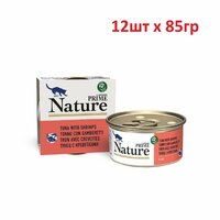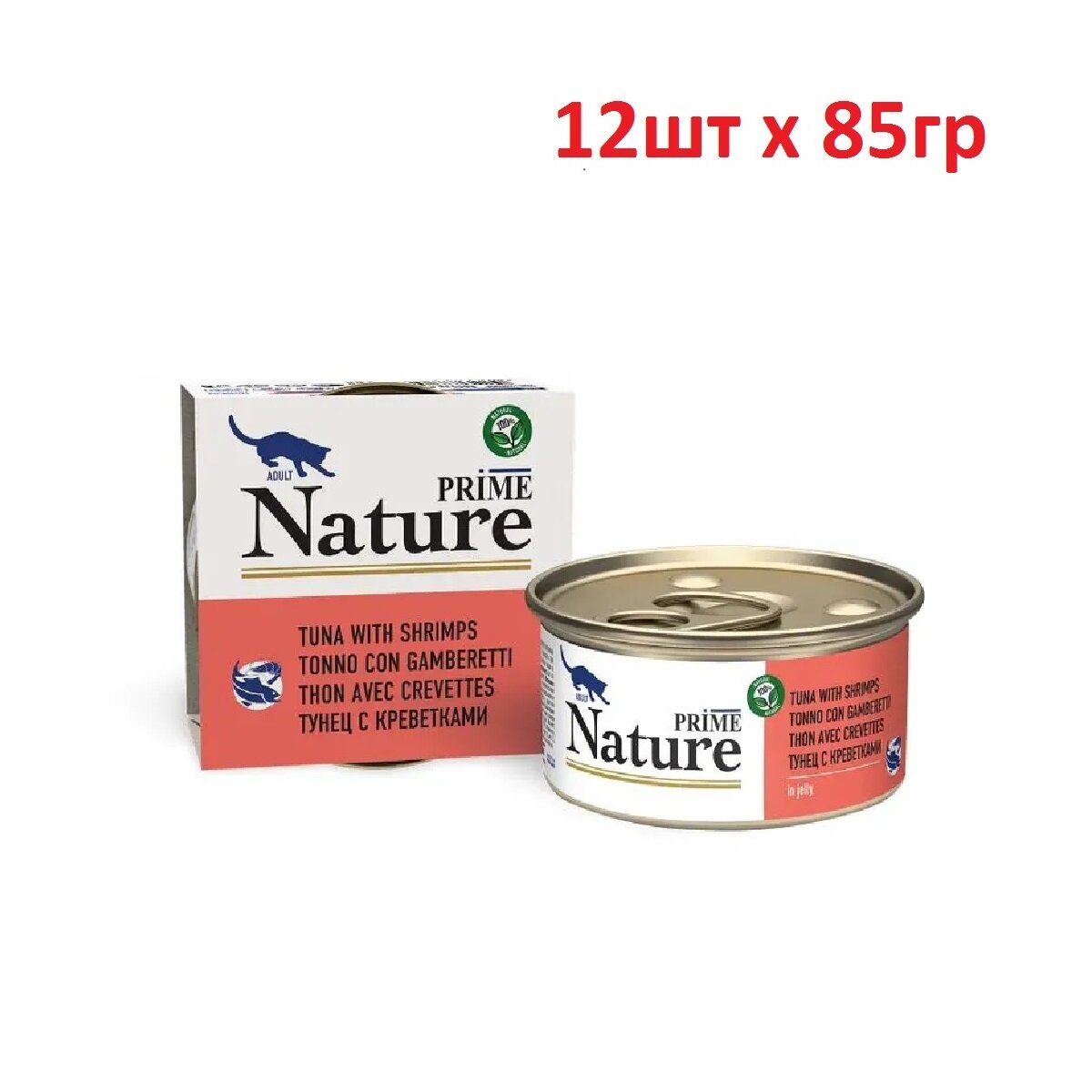 Prime Nature Корм для кошек влажный Тунец с креветками в желе. Масса нетто 85 г. Страна производитель Таиланд. Состав: тунец 51%, креветки 6%, рис 1,5%, полисахаридная камедь 1 %. Гарантированный анализ: влажность 80%, белок 12%, сырой жир 0,8%, сырая зола 1%, сырая клетчатка 0,1%. Prime Nature – 100% натуральная линейка влажных кормов приготовленная на пару из свежих и высококачественных ингредиентов. Супер-премиум корма для кошек, в составе которых волокна мяса и рыбы, отобранные вручную. Рыба выловлена в открытом море, курица, выращенная без гормонов. Разнообразие вкусов, рецептов и способов приготовления позволяет выбрать то, что наверняка оценят ваши питомцы. Кошачий корм подходит даже для тех животных, которые привередливы в питании. Производится из натуральных ингредиентов, оказывает пользу организму, повышает защитные функции. Продукт содержит свежее куриное филе в желе, которое является источником белка и аминокислот, необходимых для построения клеток, укрепления иммунитета, восполнения запасов энергии. Мясо нежирное, легко усваивается, не способствует набору лишнего веса. Кроме протеина животного происхождения в корме содержатся: рыба — речь идет про дикую рыбу, которая жила в естественных условиях, не обрабатывалась химическими составами. Она богата полиненасыщенными жирными кислотами, улучшающими состояние кожи и шерсти, тренирую память, снимают воспаление; рис — источник углеводов и энергии, а также микроэлементов, которые нормализуют стул и очищают кровь от токсинов; витамины и минералы, необходимые для поддержания здоровья костей, кожи и шерсти. PRIME NATURE не содержит искусственных красителей, консервантов и ароматизаторов. Он упакован в удобных порционных банках, что упрощает кормление и хранение. Приятный аромат и нежная консистенция консерв нравится животным.