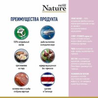 Prime Nature 100% натуральная линейка влажных кормов приготовленная на пару из свежих и высококачественных ингредиентов. Супер-премиум корма для кошек, в составе которых волокна (филе) мяса и рыбы, отобранные вручную. Рыба выловлена в открытом море, курица, выращенная без гормонов. Без ГМО, искусственных красителей, стимуляторов аппетита и ароматизаторов. Prime Nature производится в Таиланде. Разнообразие вкусов, рецептов и способов приготовления позволяет выбрать то, что наверняка оценят Ваши питомцы