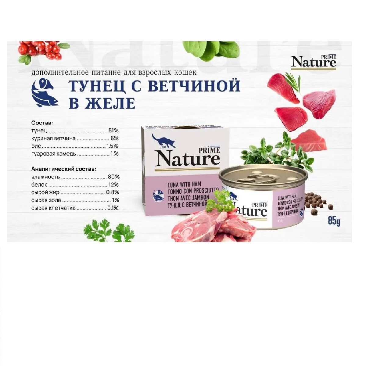 Купить PRIME NATURE корм влажный в желе Тунец с ветчиной для кошек 85г (12 шт) с доставкой по всей России. PRIME NATURE корм влажный в желе Тунец с ветчиной для кошек 85г (12 шт): сравнение цен, характеристики, фото, актуальное наличие и цены.