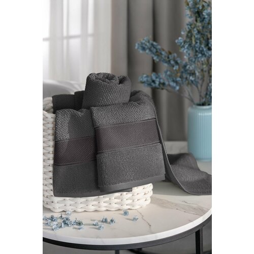 PRIME PRIVE Набор банных полотенец «Отилия» махровые, хлопок, 50×100 + 70×140, темно-серый, 2 шт
