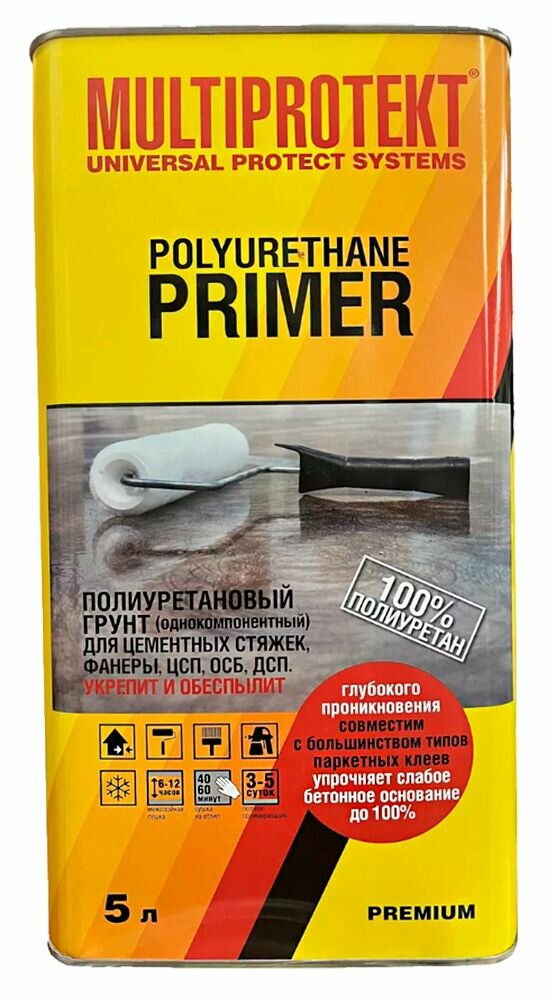 Primer Грунт Полиуретановый Однокомпонентный 5л для цементных (минеральных), деревянных оснований, укрепляет, гидроизолирует, повышает Адгезию: сравнение цен, характеристики, фото, актуальное наличие и цены.