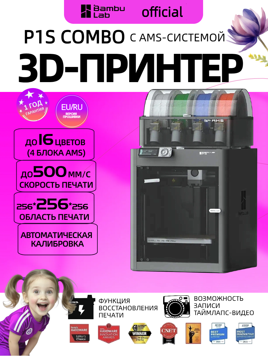 Купить Принтер 3D Bambu Lab «P1S Combo», FDM, FFF, PJP, автоматическая подача материалов, 350 Вт с доставкой по всей России.