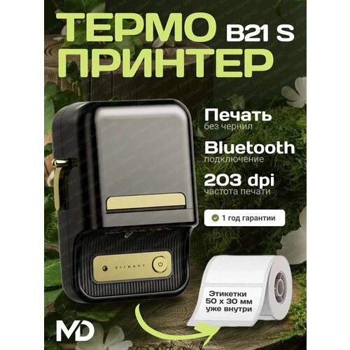 Принтер для этикеток наклеек термопринтер B21S черный портативный