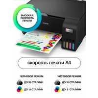МФУ струйное Epson L3250 создано для домашних нужд печати, сканирования и копирования различного материала. Пьезоэлектрическая струйная технология и система непрерывной подачи чернил 4 цветов позволяют получать детализированные изображения с насыщенными цветами. Печать может выполняться на обычной бумаге, фотобумаге, конвертах, открытках. Кнопочная панель со световыми индикаторами и обозначениями гарантирует простое управление функциями МФУ Epson L3250. Из интерфейсов предусмотрены модуль Wi-Fi и порт USB.