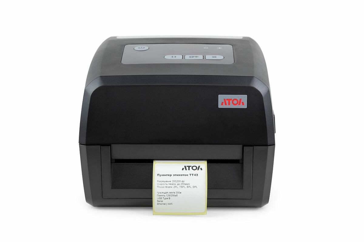 Купить Принтер этикеток АТОЛ TT43 (термотрансфертная печать, 203 dpi, USB, RS-232, Ethernet, ширина печати 108 мм, скорость печати 152 мм/с) с доставкой по всей России.