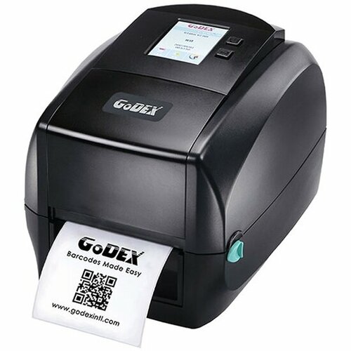 Godex RT863i - настольный термо/термотрансферный принтер для печати штрих-кодов, текста, графики на различных этикетках, бумажных, полипропиленовых, тканевых, нейлоновых и других носителях. Также принтер позволяет печатать на непрерывной ленте с клеящим слоем без подложки.