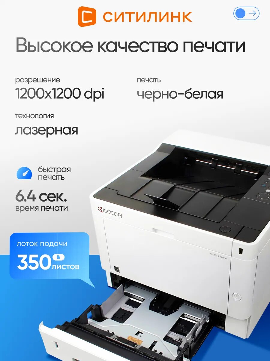 Kyocera Ecosys P2040DN обеспечивает быструю черно-белую печать со скоростью до 40 страниц в минуту, что позволяет справляться с большими объемами работы без задержек. Высокое разрешение печати 1200x1200 dpi гарантирует четкость текста и графики, делая каждый документ профессиональным и легко читаемым. Принтер оснащен функцией автоматической двусторонней печати, что значительно экономит бумагу и время. Время разогрева составляет всего 15 секунд, а первая страница печатается за 6,4 секунды. Этот принтер а4 лазерный черно белый поддерживает печать на бумаге плотностью от 60 до 220 г/м2, что расширяет возможности его использования.