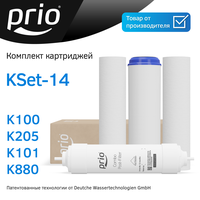 Комплект быстросъемных картриджей KSet-14 для систем обратного осмоса Prio Новая Вода. Набор состоит из 4-х картриджей - K100, K205, K101 и K880 . Рекомендуется для моделей OU510, OU600, OUD600.