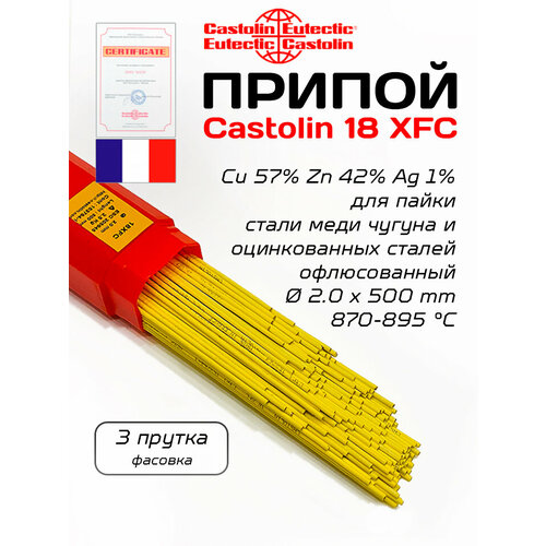 Припой Castolin 18 XFC для пайки стали, оцинкованной стали, никеля, меди, сплавы, с флюсом 2 мм 3 прутка: сравнение цен, характеристики, фото, актуальное наличие и цены.