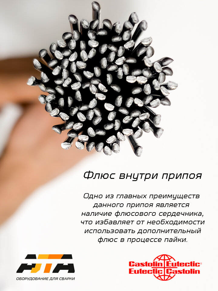 Castolin 192 FBK - припой (гибкий пруток с флюсовым сердечником Ø 2 мм x 495-500 мм) для капиллярной пайки-сварки алюминия, алюминиевых сплавов, меди и медные сплавы (латунь), соединений алюминия с медью и с нержавеющей сталью.