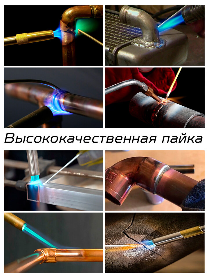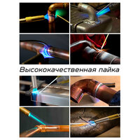 Пайка: Нагрейте соединяемые детали по всей поверхности. Поместите пруток в место соединения. Расплавьте каплю припоя и продолжайте нагревать до тех пор, пока не запаяете соединение. Не перегревайте металл! Для алюминия не используйте прямой нагрев.