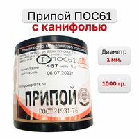 Высококачественный оловянно-свинцовый припой с соотношением 60% олова, 40% свинца с температурой плавления 183-190°С. Температура пайки 250-270°С. Припой легко растекается при нагревании, что способствует существенному улучшению качества пайки. Пруток имеет диаметр 1 мм.