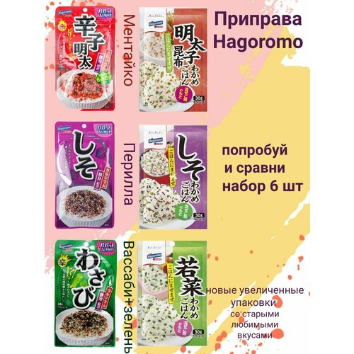 Приправа Хагоромо 6шт Перилла, менттайко, васаби и зелень с вакаме Фурикакэ для риса Hagoromo, Япония: сравнение цен, характеристики, фото, актуальное наличие и цены.
