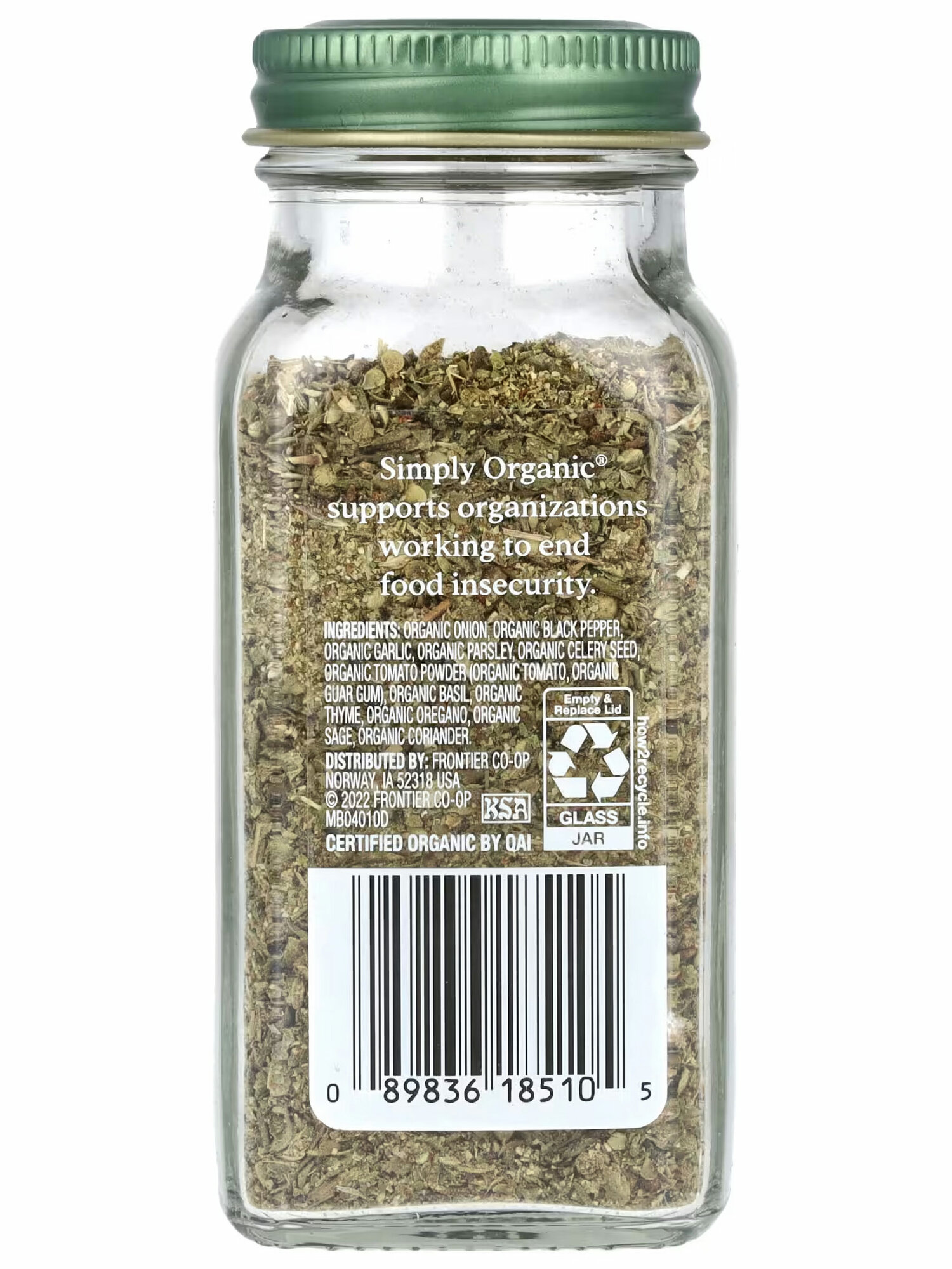 С универсальной приправой Simply Organic® вам не будет не хватать соли. Приправа поможет сделать любое блюдо вкусным. Эта ароматная, удобная и многофункциональная приправа содержит лук, черный перец, чеснок и восемь других специй, которые позволят сделать вкус множества блюд более насыщенным.