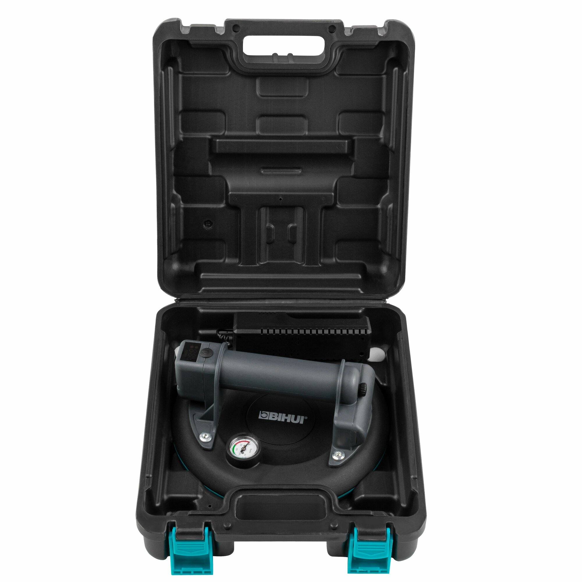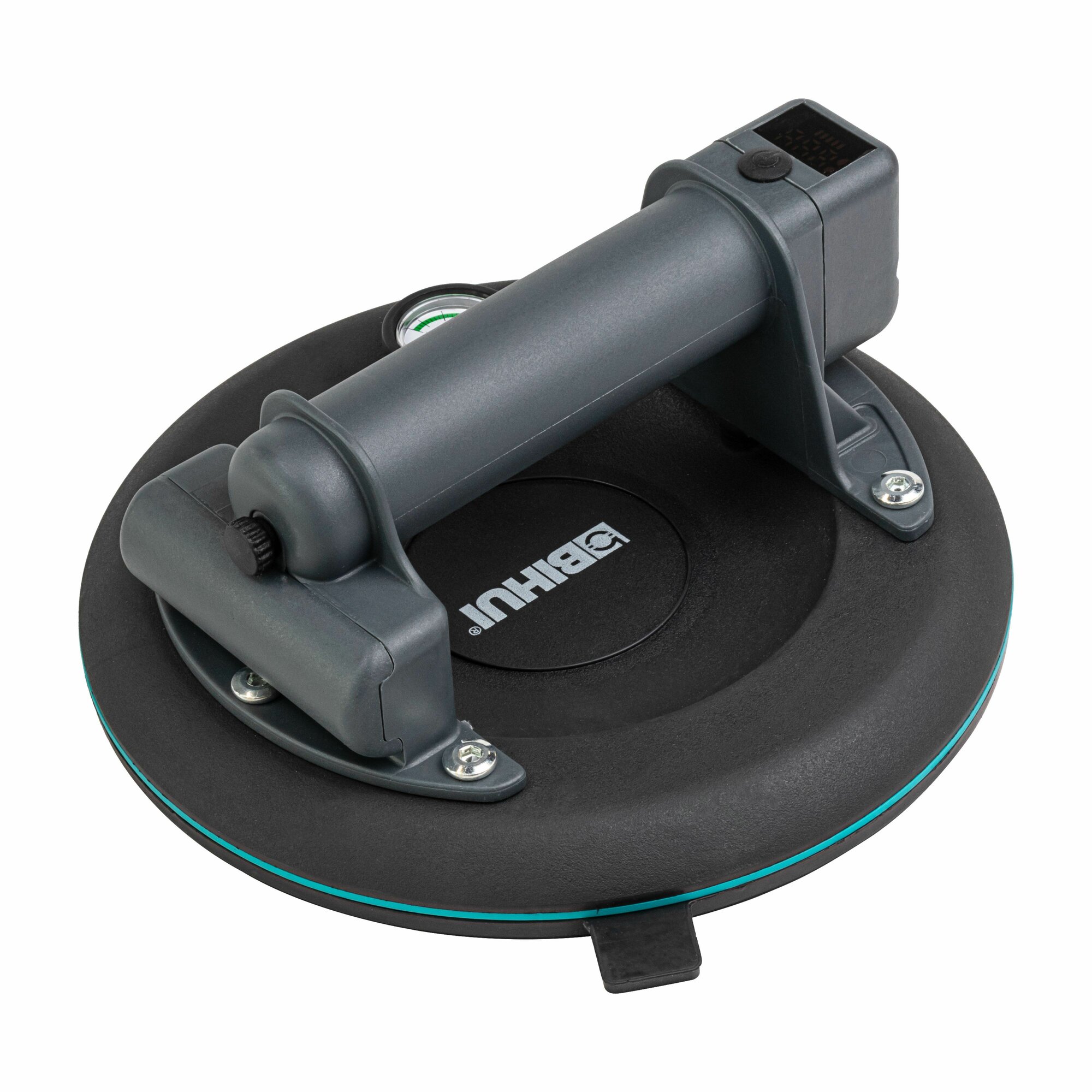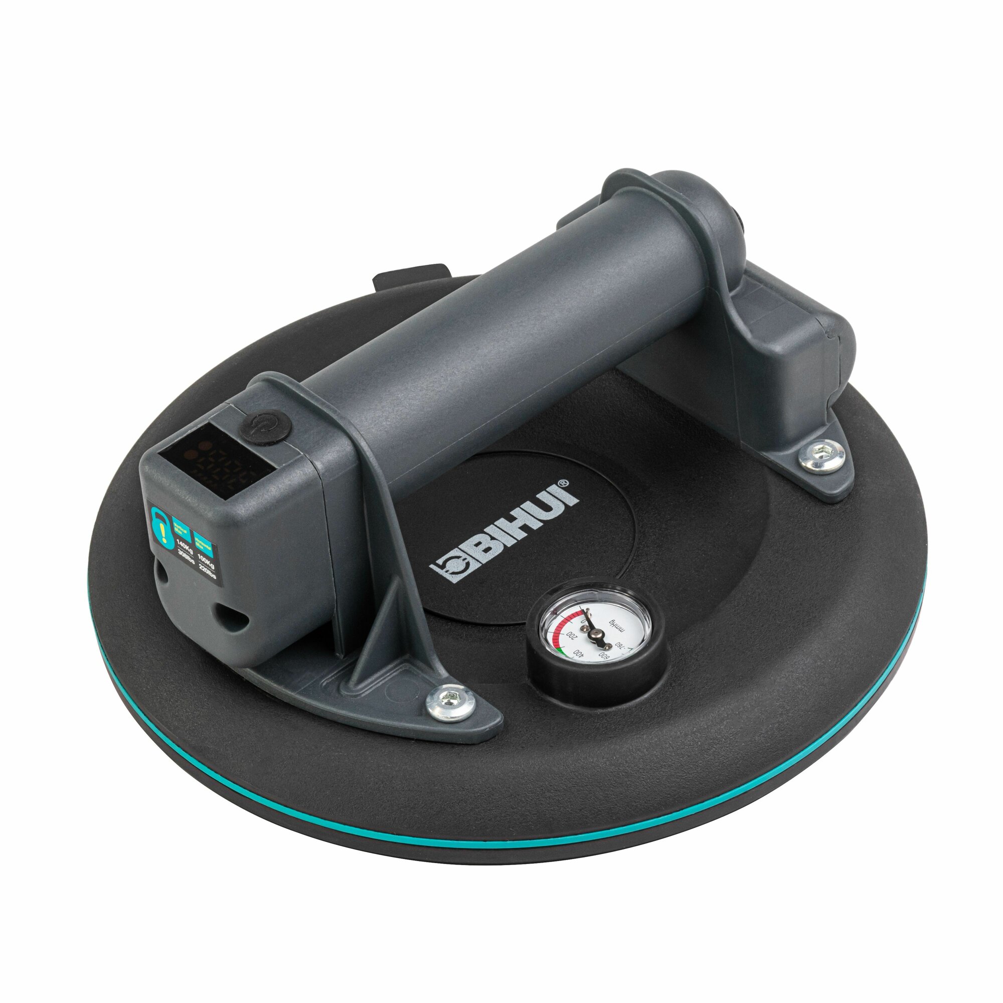 Присоска BIHUI с авто оснащена встроенным электрическим насосом, датчиком давления, дисплеем и манометром давления для визуального контроля. Датчик давления анализирует силу разрежения воздуха и автоматически включает насос, когда требуется восстановить необходимые параметры вакуума (автоматическая подкачка). Всасывающего усилия вакуумного насоса достаточно для удержания грузов массой до 140 кг на отрыв и до 100кг на соскальзывание.