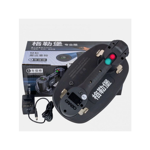 Аккумуляторная вакуумная присоска GRABO PRO предназначена для ручной транспортировки каменных, керамических и бетонных плит, стекла, и других материалов в т. ч. с агрессивными рельефными поверхностями. Модель GRABO PRO это новая модель в линейке присосок GRABO которая специально разработана для профессионалов в области мощения, укладки напольных покрытий, установщиков стекла, камня, керамогранита, строителей и многих других. GRABO PRO оснащена датчиком давления и цифровым дисплеем, в её контроллер заложены интеллектуальные настройки для создания оптимального уровня вакуума для каждого конкретного объекта, исходя из его массы. Датчик давления в GRABO PRO анализирует силу разрежения воздуха и автоматически включает насос, когда требуется восстановить необходимые параметры вакуума. Присоска GRABO PRO оснащена мощным и надежным вакуумным насосом и уплотнительным кольцом из прочного пористого материала. Всасывающего усилия вакуумного насоса достаточно для удержания грузов массой до 170 кг с полированной поверхностью и грузов массой до 140 кг с умеренно рельефной поверхностью. Присоска является эффективным вакуумным подъемником даже для пыльных, рельефных или шероховатых поверхностей. Он отлично работает с плитами мощения, изделиями из природного камня, керамогранитом, стеклом*, деревом, керамической плиткой*, листовыми металлами и другими материалами, имеющими достаточную плоскую поверхность. Оборудование работает от съемного литий-ионного аккумулятора емкостью 14,8 вольт и 2600 мАч. Для полной зарядки аккумулятора требуется два часа. При полной зарядке этой мощной батареи хватает на 900 циклов работы или 1,5 часа непрерывной работы. Батареи хватает на целых 30 дней в режиме ожидания. GRABO PRO оснащена четырьмя подъемными проушинами, расположенными по обеим сторонам поручня. GRABO PRO оснащен интеллектуальным цифровым датчиком давления.