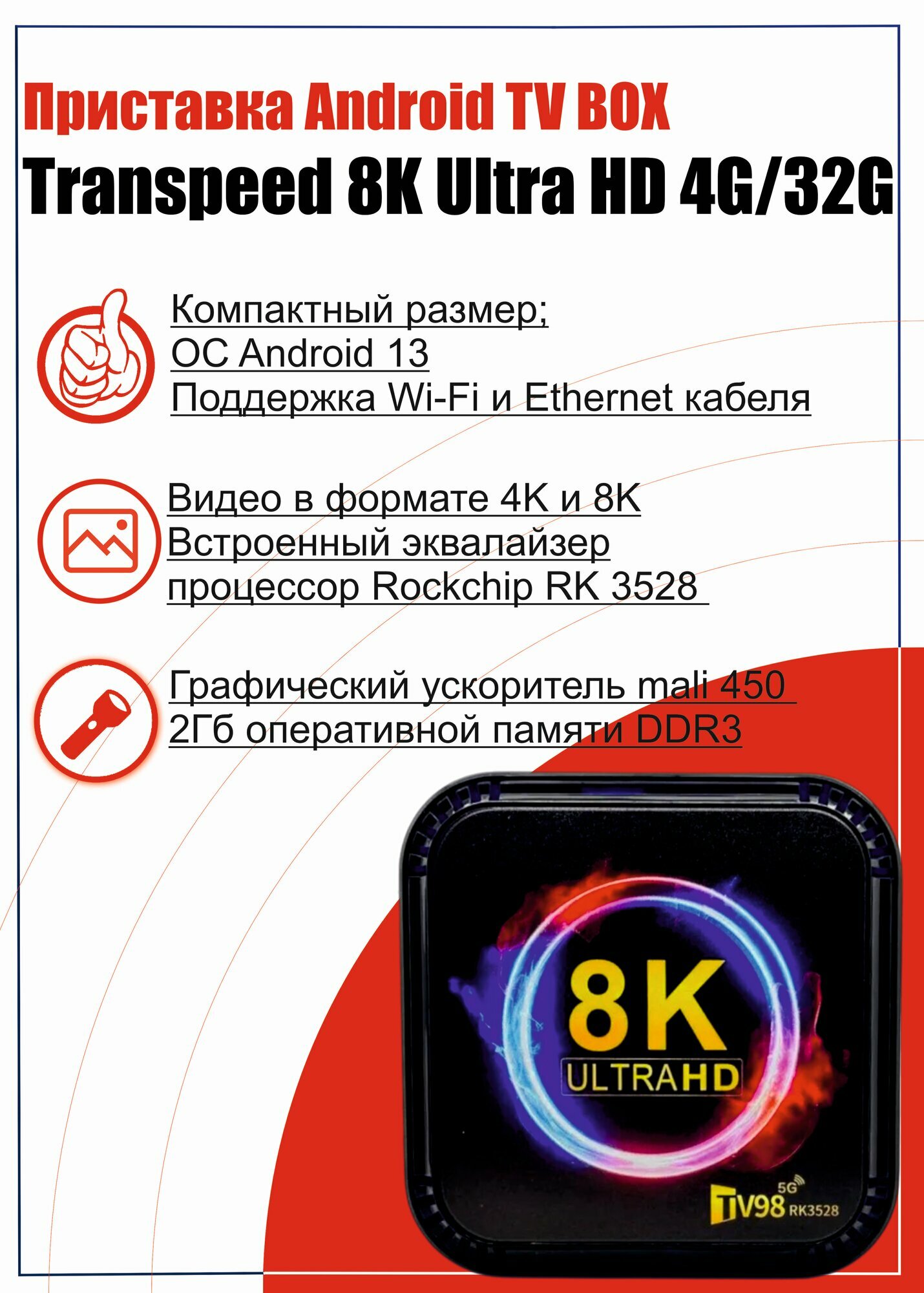 Купить Приставка Android TV BOX Transpeed 8K Ultra HD 32G с доставкой по всей России. Приставка Android TV BOX Transpeed 8K Ultra HD 32G: сравнение цен, характеристики, фото, актуальное наличие и цены.
