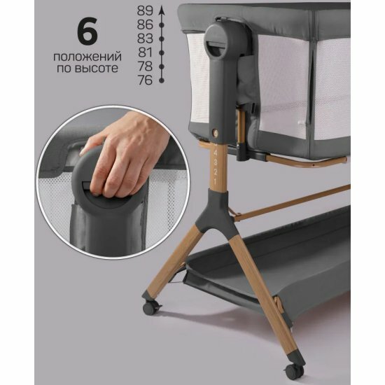 Уход: не отбеливать, не гладить, не использовать в сушильной машине, сухая чистка запрещена, только ручная стирка . Состав: металл , пластик, полимерные материалы, текстильные материалы (100% полиэстер). Комплектация: корпус люльки-1шт, матрас с жестким дном-1шт, корзина для хранения-1шт, поперечная балка-1шт, ноги-2шт, опорные дуги-2шт, москитная сетка-1шт, страховочные ремни. Особенности: мягкая тканевая обивка, не шуршит; ножки под дерево; 4 поворотных колеса со стоппером; регулируется по высоте 6 положений; можно регулировать каждую сторону независимо (антирефлюкс); москитная сетка в комплекте; откидной бортик; механическое укачивание; . Габариты: Высота: 76-78-81-83-86-89. Ширина: 65. Длина: 101. Спальное место: 50*84.