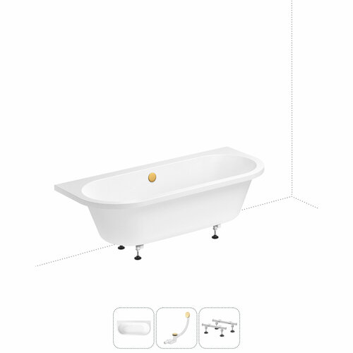 акриловая ванна Lavinia Boho Art 170х75 см 37080075; усиленные металлические ножки с монтажным набором Complement 37500010; слив-перелив click-clack с возможностью верхней прочистки Wellsee Useful Extras 231915000 (цвет золото); инструкция по монтажу и эксплуатации; гарантийный талон.