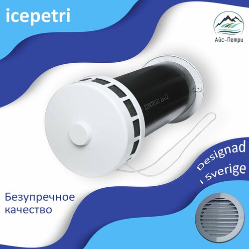 Вентиляционный стеновой приточный клапан КИВ-125 с регулируемым открыванием в сборе, обеспечивает поступление свежего очищенного воздуха в жилые или другие помещения. Клапан имеет защиту от насекомых, шума, пыли, от промерзания стены и выпадения конденсата, а также регулировку количества поступающего воздуха. Приточный клапан — качественная альтернатива открытым окнам. Приток регулируется вращением оголовка с помощью ручки-регулятора или веревочки (идет в комплекте). Надежно фиксируется при монтаже за счет уплотнительного кольца. Не требует потребления электроэнергии. Главное преимущество КИВ-125 перед другими приточными клапанами в том, что он подаёт воздух по всей окружности. На примере обычной стандартной жилой квартиры: один КИВ-125 icepetri обеспечивает необходимым постоянным количеством воздуха комнату до 20м². В паре с кондиционером, КИВ-125 icepetri создает идеальный микроклимат в помещении.