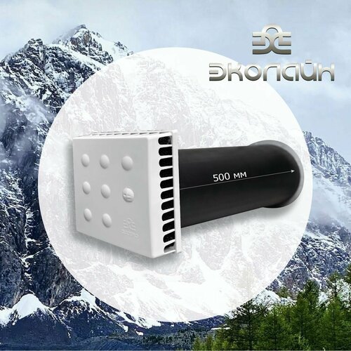 Приточный клапан КИВ-125 с металлической решеткой, оголовком Quadro и трубой 500 мм производства ООО "Эколайн" предназначен для применения в городских квартирах, загородных и многоквартирных домах и небольших офисных зданиях.