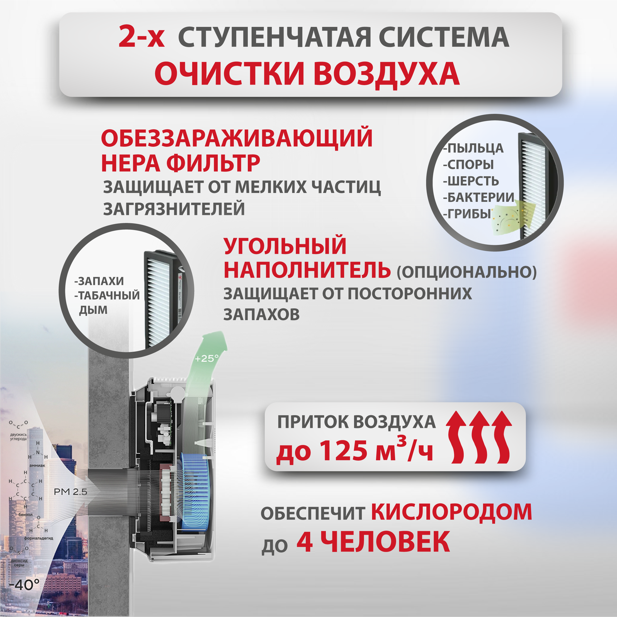 | Воздухообмен | 20 - 125 м³/час |