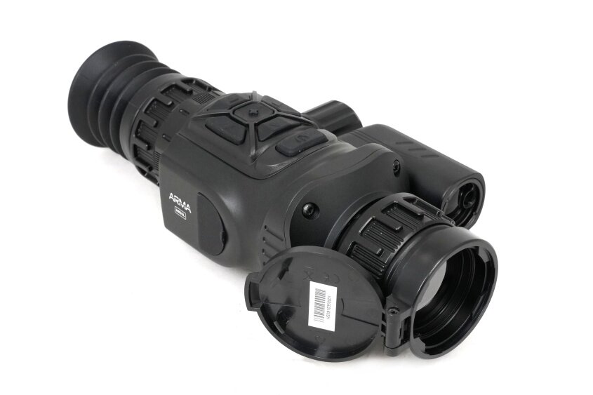 Германиевый объектив с фокусным расстоянием 35 мм и апертурой F1.0 обладает наибольшим во всей линейке прицелов показателем угла пространственного поля зрения FOV 12.5°x10°. В линейных размерах стрелок будет видеть перед собой сектор пространства размером 21,9 - 17,5 м на удалении в сто метров. Начальный уровень увеличения составляет 1,6х, для масштабирования изображения доступна функция Digital zoom, позволяющая плавно или дискретно изменять кратность в пределах от 1х до 8х. Наведение резкости изображения выполняется вручную, путем поворота низкопрофильного кольца на объективе.