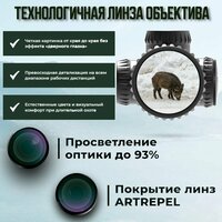 Просветленная линза объектива с уменьшенной хроматической аберрацией получена результатом химического ламинирования гарантирует отличную цветопередачу, высокую резкость изображения по всему полю видимости и на любой кратности прицела.