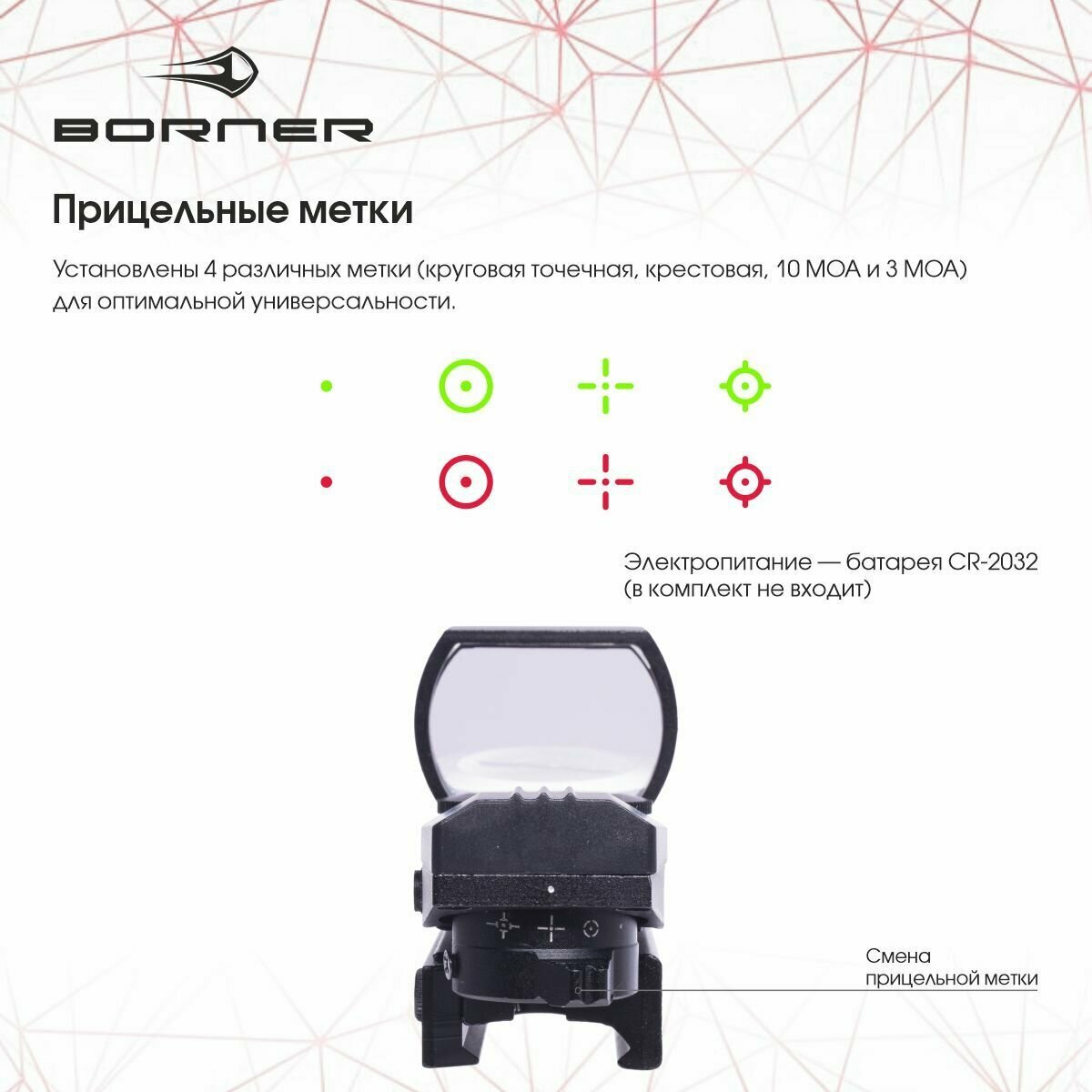 Купить Прицел Borner коллиматорный открытого типа крепление weaver RDBHD101-20 с доставкой по всей России.