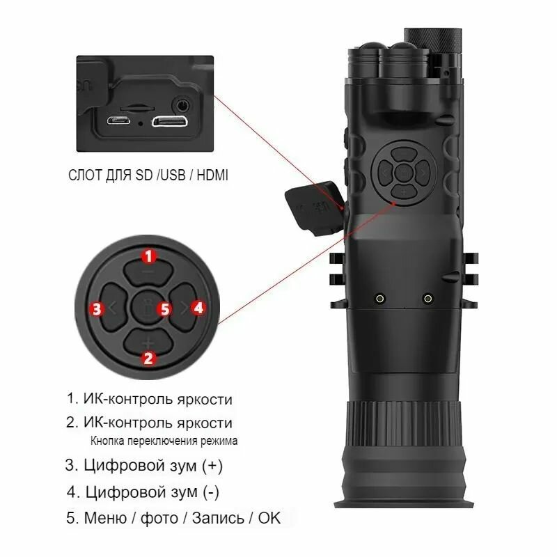 Прибор ночного видения, адаптер 35-45 мм, шейный ремешок, USВ-кабель