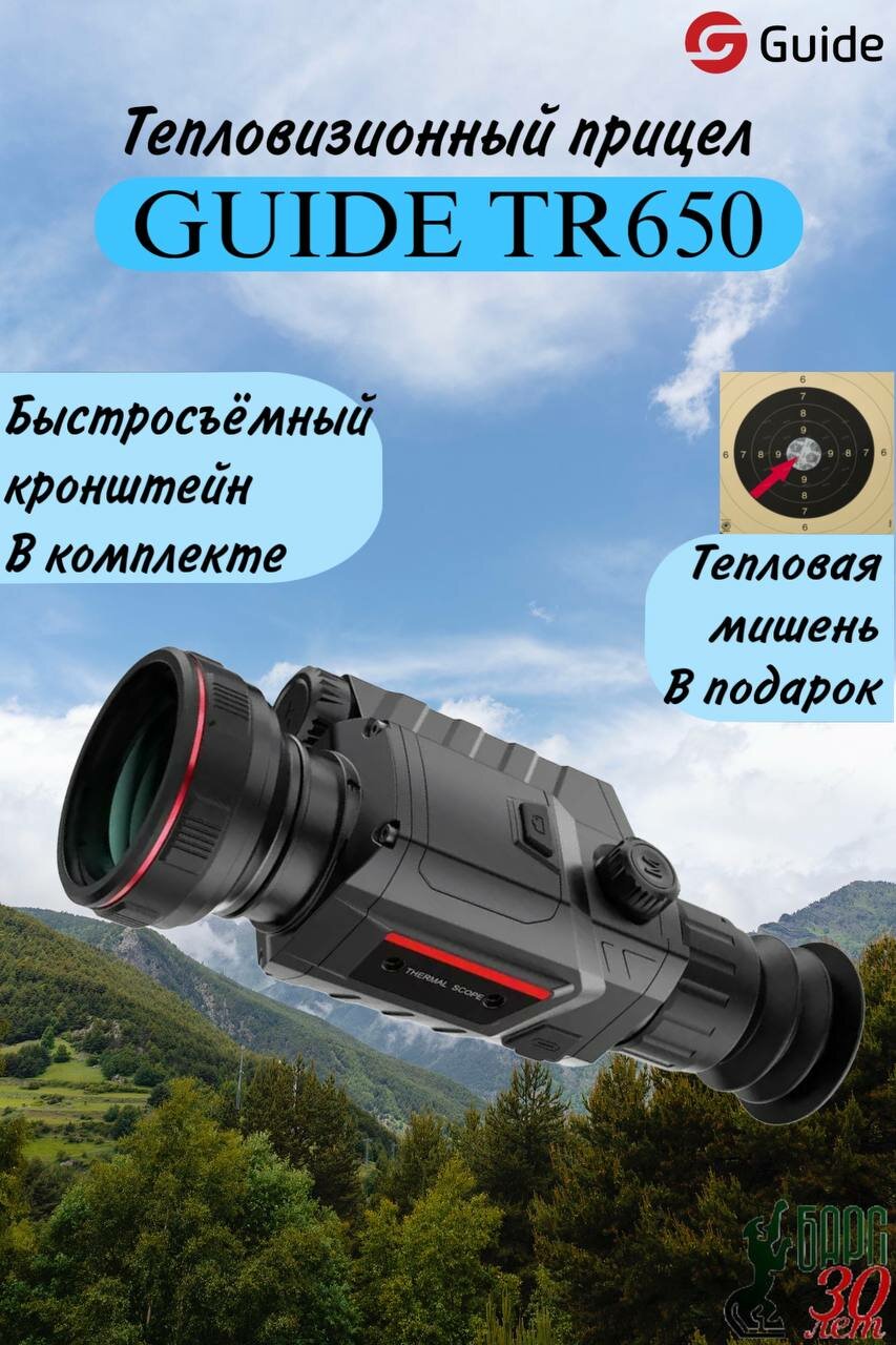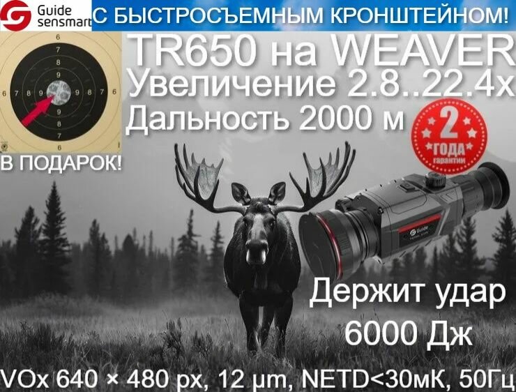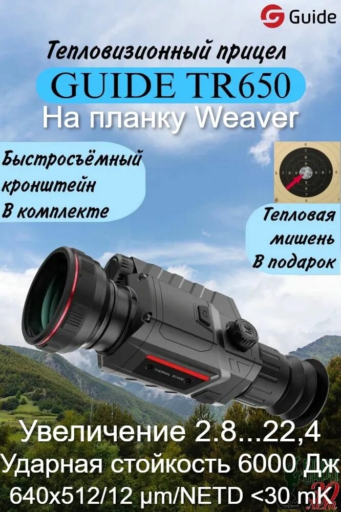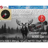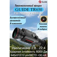 Тепловизионный прицел Guide TR650 (2.8x, ø50мм) сочетает в себе современный высокотехнологичный дизайн и новейшие технологии тепловизионной оптики премиум-класса. Долго и эффективно работает при низких температурах (NETD <30 мК), обеспечивает отличный обзор и привычную установку на оружие на планку Picatinny, способен уверенно обнаружить цель на расстоянии до 2000 метров вне зависимости от времени суток и погодных условий.