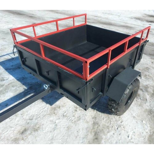 Универсальный прицеп широкого назначения. Незаменим для транспортировки по загороду и бездорожью хозяйственных грузов (дров, стройматериалов, песка, грунта и других сыпучих материалов), личных вещей, провианта и туристического снаряжения (например, если отправляетесь в поход большой компанией). Грузоподъемность 400 кг. Металлический кузов 1000х1200х280 мм, откидной задний борт. В комплекте дополнительные борта высотой 150 мм. Снабжена дышлом и универсальным сцепным устройством под автомобильный фаркоп. Оснащена колесами квадроцикла, пневматические шины 19/7*8. Российское производство.