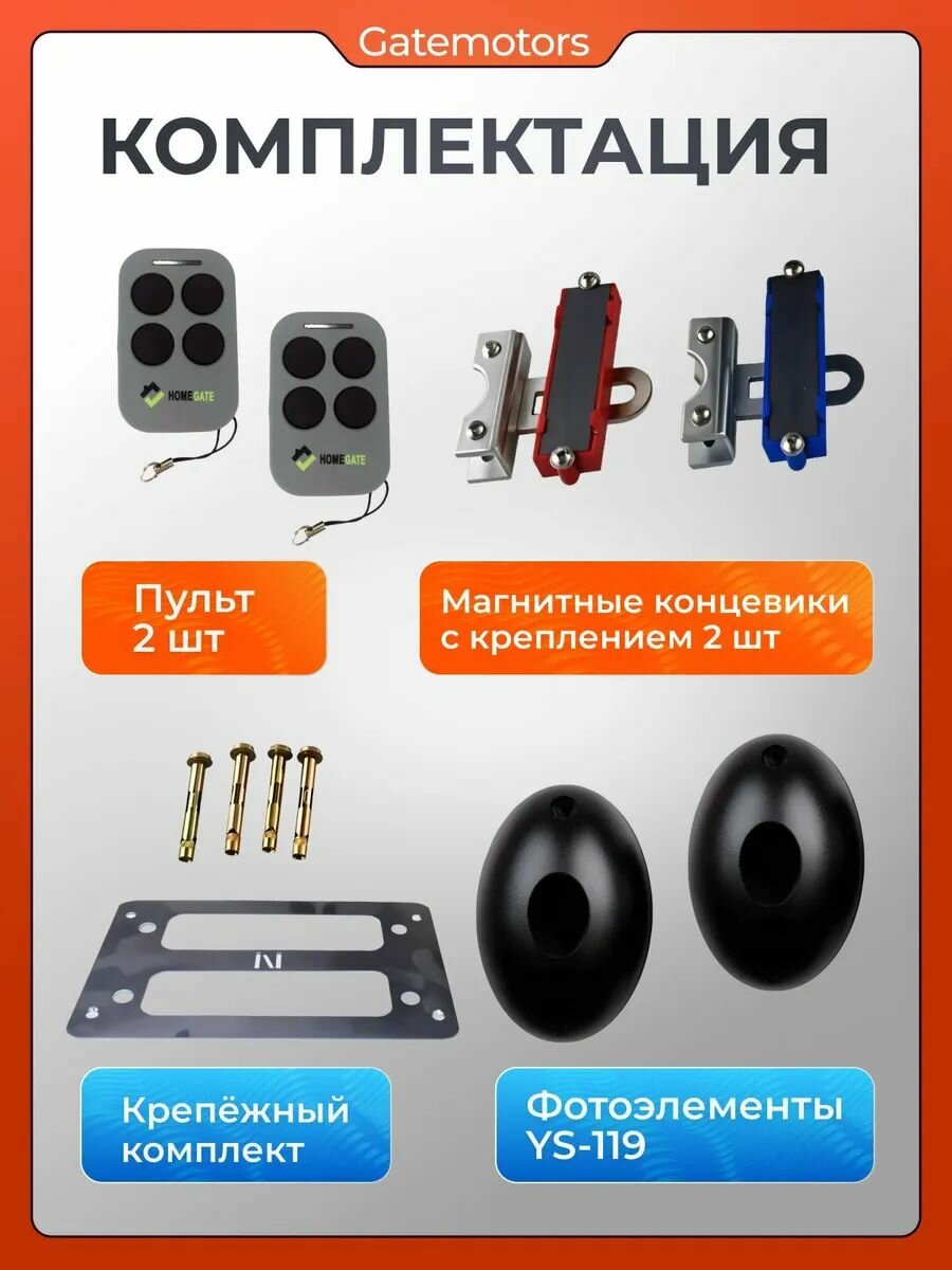 Данный комплект состоит из: Привод Привод многооборотный LTM 600 — компактный и эффективный привод для автоматизации арматуры малого и среднего размера. Он разработан для бюджетных проектов и применений, где не требуется максимальный крутящий момент, но важны надежность и базовый функционал. Этот привод — отличный выбор для модернизации существующих систем или новых объектов с умеренными требованиями. Несмотря на компактные размеры, привод LTM 600 наследует ключевые технологические преимущества серии: двигатель с медной обмоткой для эффективного теплоотвода и внутренняя шестерня из углепластика (карбона) в редукторе для обеспечения долгого и стабильного срока службы. Основные характеристики привода для откатных ворот Home Gate LTM600 включают: 1. Рабочее напряжение : 220 В переменного тока, частотой 50 Гц; 2. Мощность двигателя: 250 Вт; 3. Скорость привода: 1400 об/мин; 4. Скорость передвижения ворот: 12 м/мин; 5. Максимальный вес ворот: 600 кг; 6. Рабочая температура: -20С ~ +60C; 7. Внутренняя шестерня изготовлена из углепластика (карбона) 8. Магнитные концевые выключатели 9. Для работы Wi Fi необходимо докупить дополнительный модуль. Артикул 3194843419 Фотоэлементы: Фотоэлементы YS-119 — это проводные устройства безопасности, которые мгновенно останавливают ворота при обнаружении препятствия в зоне движения 15 м, защищая людей, животных и технику. Не требуют сложного монтажа и питания от сети. Сигнальная лампа YS-430: Яркий предупредительный сигнал для всех вокруг, четко информирует о начале движения ворот, предотвращая нештатные ситуации на территории. Сигнальная лампа видна даже днем. Внимание! Дизайн лампы может отличаться от представленного на фото, но характеристики неизменны Зубчатые рейки: Комплект реек на 5 м превращает усилие двигателя в плавное и точное движение створки. Качественная закаленная сталь обеспечивает износостойкость и тихую работу на протяжении многих лет. 8 мм зубья рейки идеально сцепляются с шестерней привода, гарантируя уверенный ход без проскальзываний даже в мороз и слякоть. Данный комплект не содержит подставки