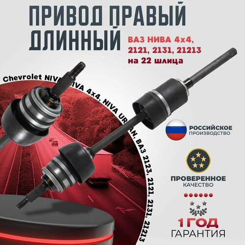 Наше производство в России помогает нам обеспечивать клиентам качество продукции. Кроме того, мы наблюдаем за качеством на каждом этапе. Комплектация Привод в сборе правый длинный Нива 4х4, ВАЗ 2121, 2131, 21213 на 22 шлица
